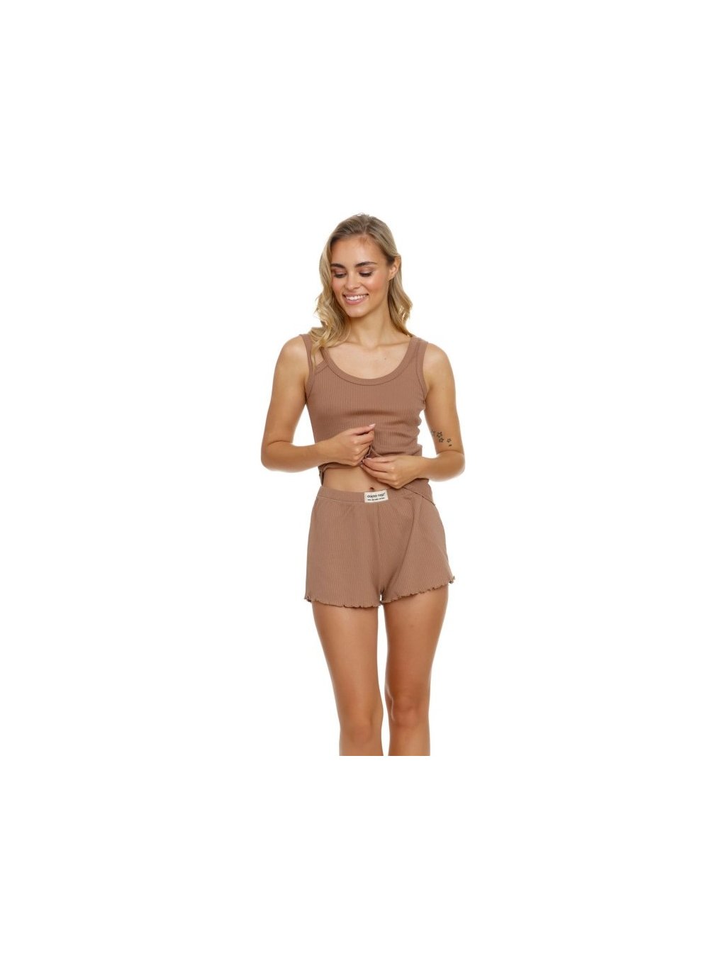 HNĚDÉ KRÁTKÉ PYŽAMO Z ŽEBROVANÉ BAVLNY