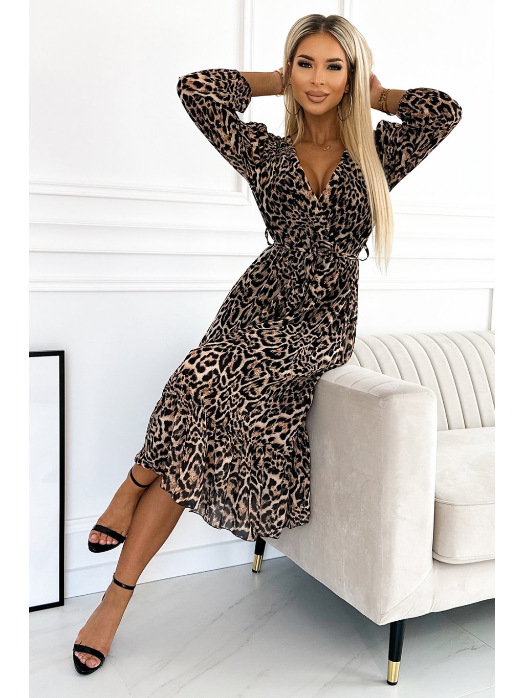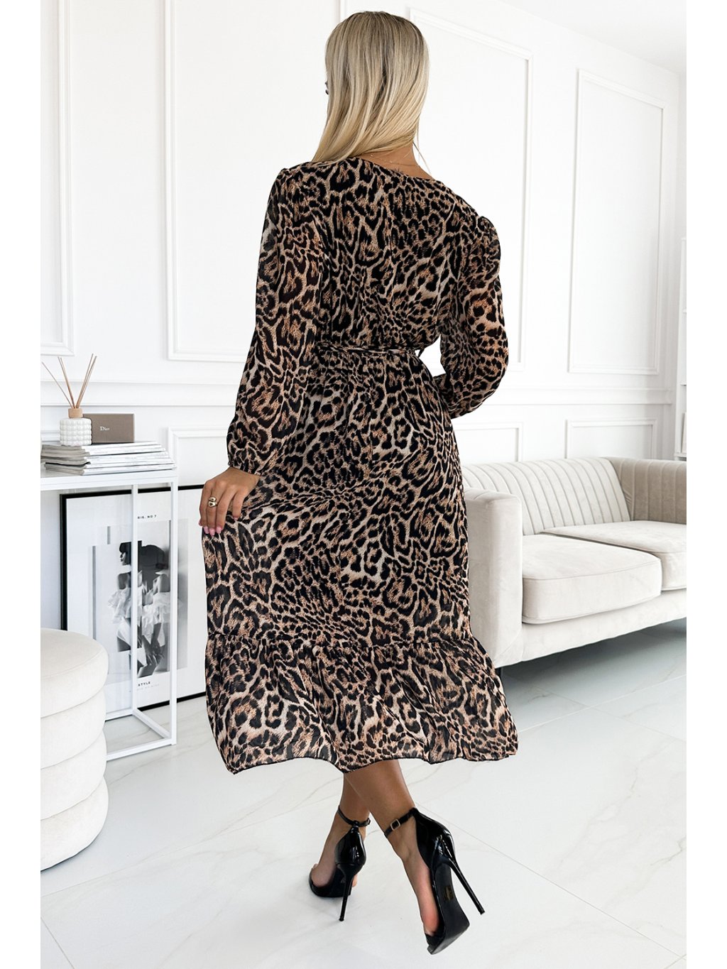 HNĚDÉ LEOPARDÍ ŠIFONOVÉ ŠATY WILD