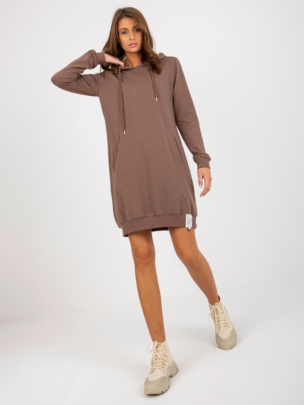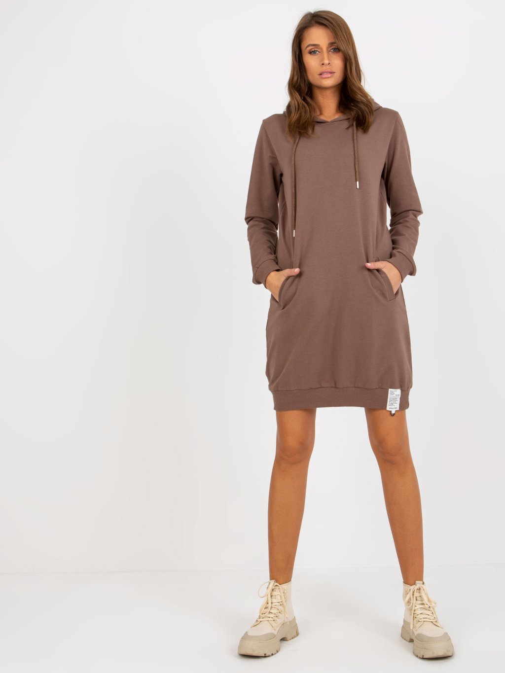 HNĚDÉ MIKINOVÉ ŠATY S KAPSAMI