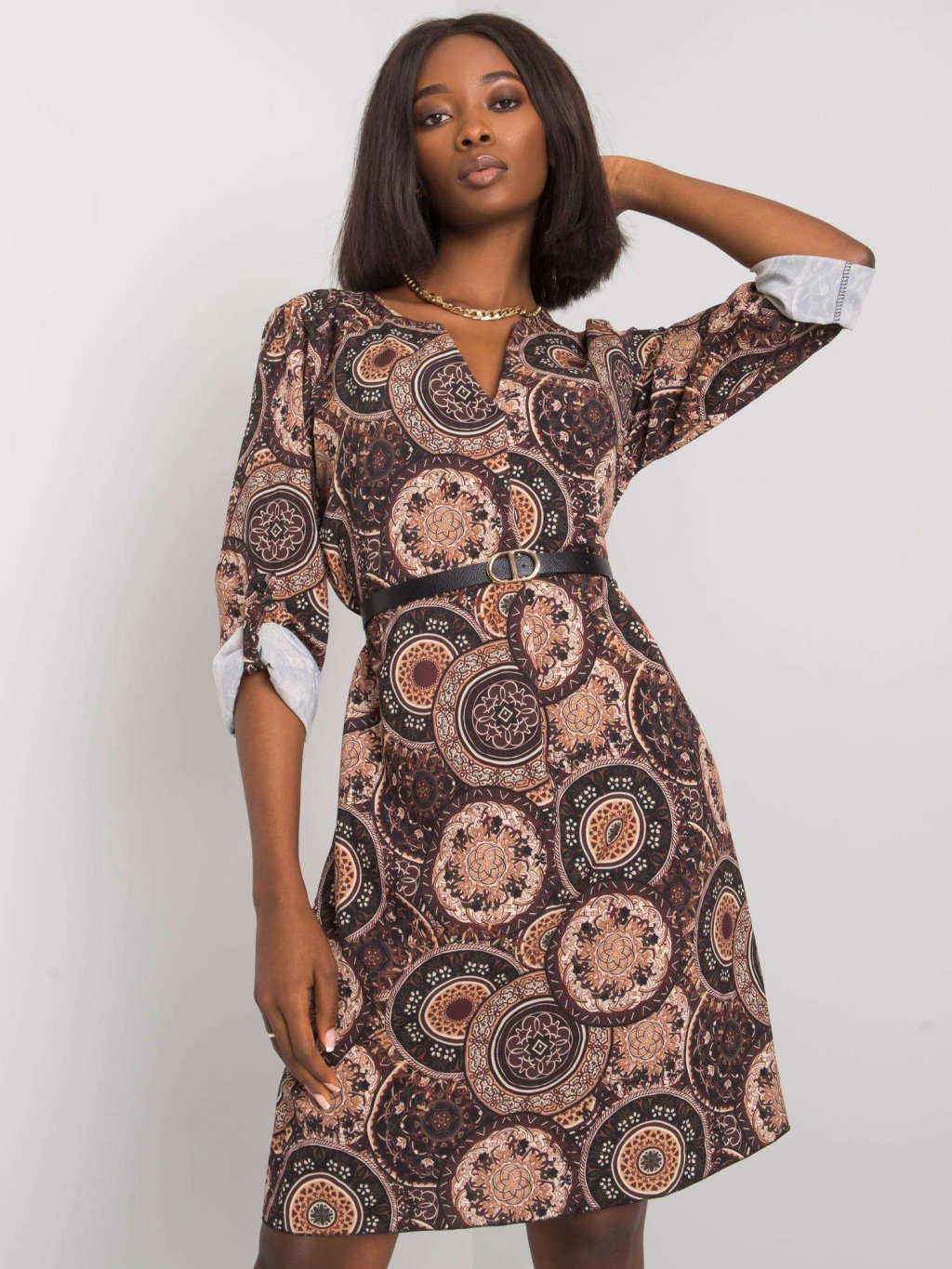 HNĚDÉ VZOROVANÉ ŠATY