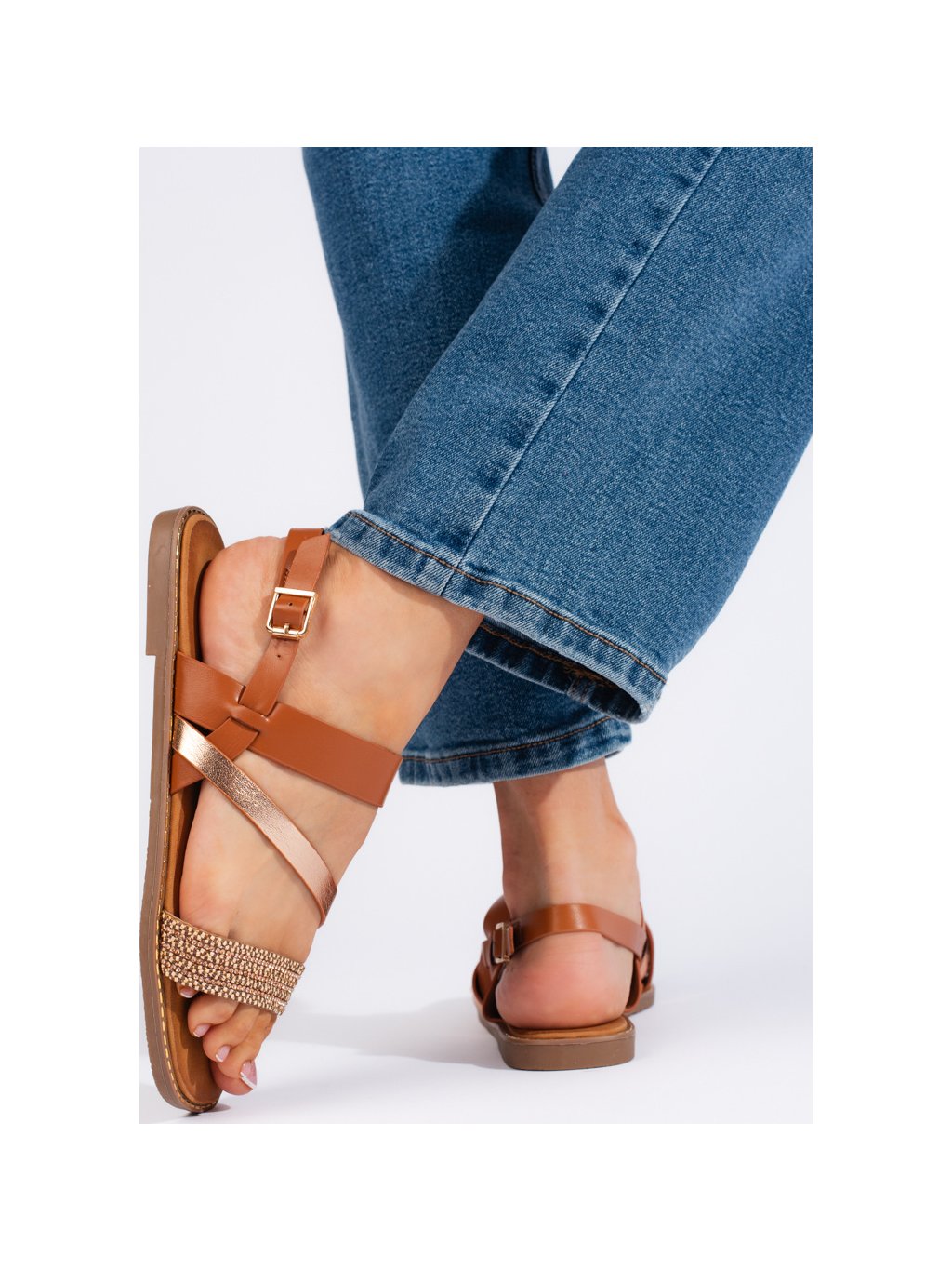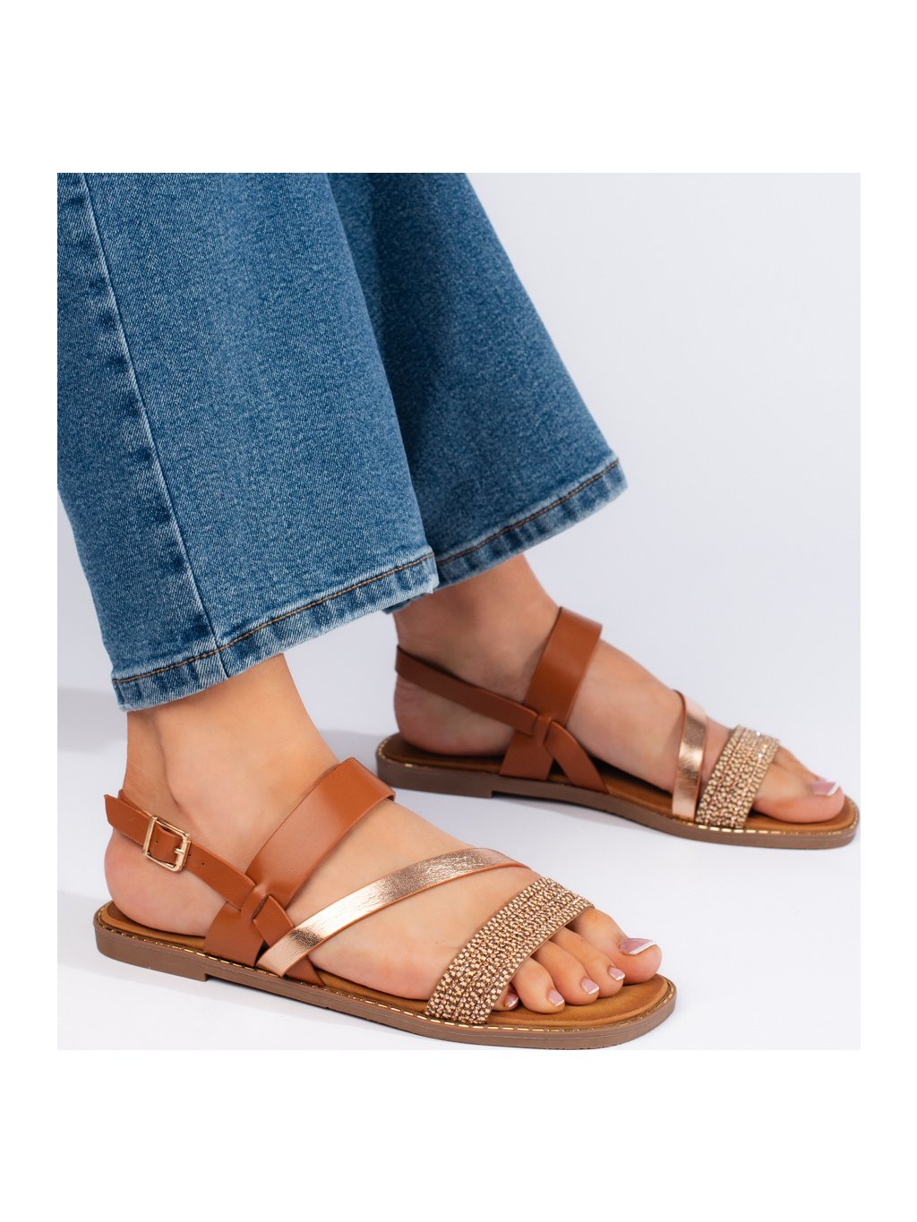 HNĚDO-ZLATÉ DÁMSKÉ SANDÁLY