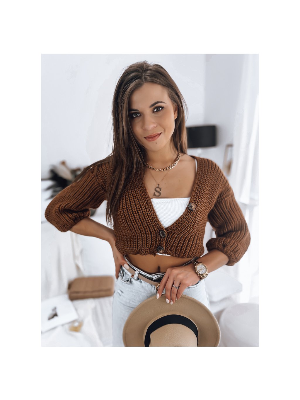 HNĚDÝ KRÁTKÝ SVETR NA KNOFLÍKY NUTI