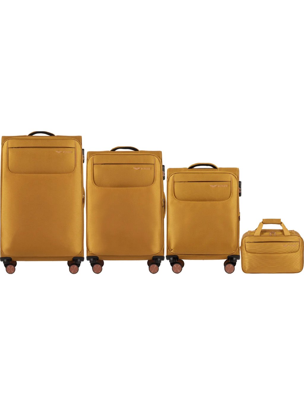 HOŘČICOVÁ SADA CESTOVNÍCH KUFRŮ A PŘÍRUČNÍHO ZAVAZADLA TRN01