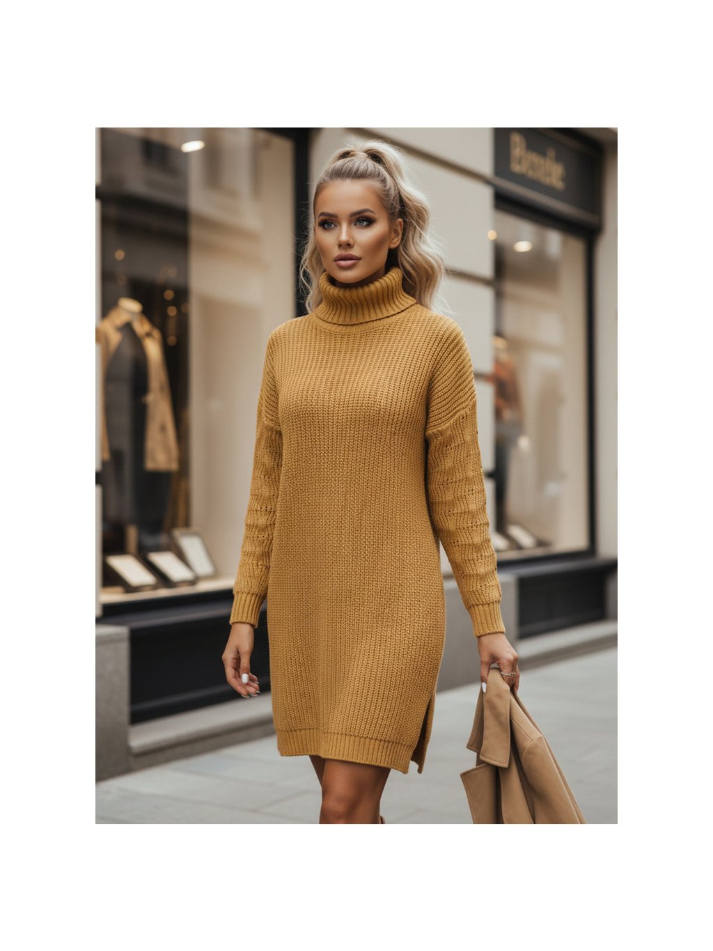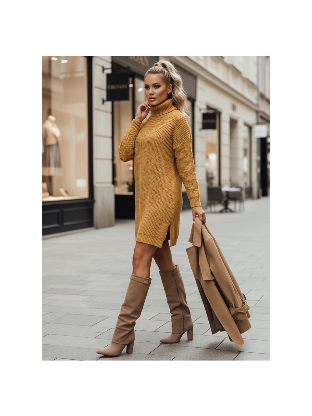 HOŘČICOVÉ PLETENÉ ŠATY FUERTA SE VZOROVANÝMI RUKÁVY