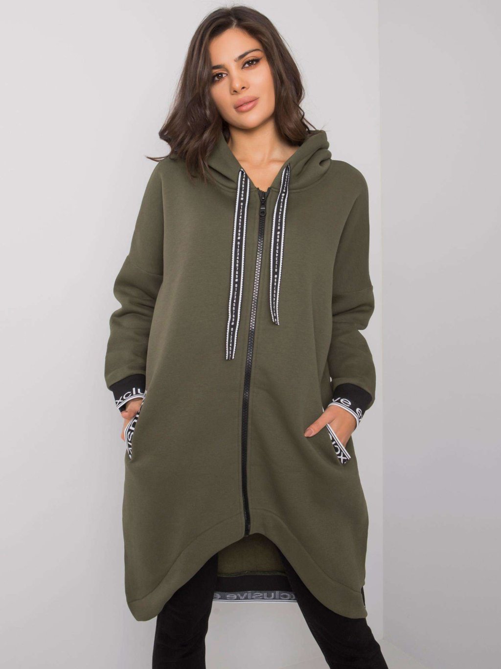 KHAKI DÁMSKÁ DLOUHÁ MIKINA NA ZIP
