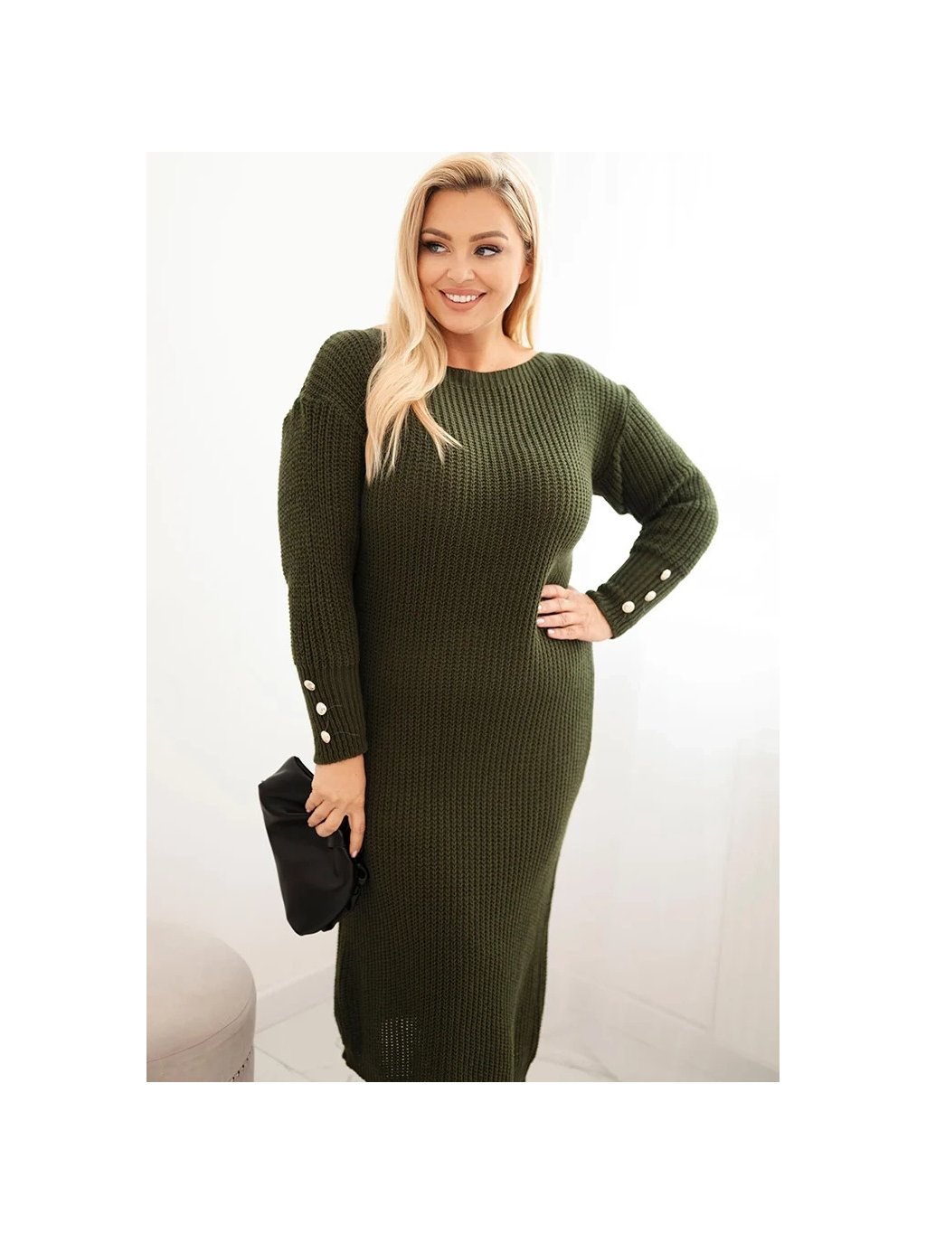 KHAKI DÁMSKÉ PLUS SIZE PLETENÉ ŠATY S MOHEREM