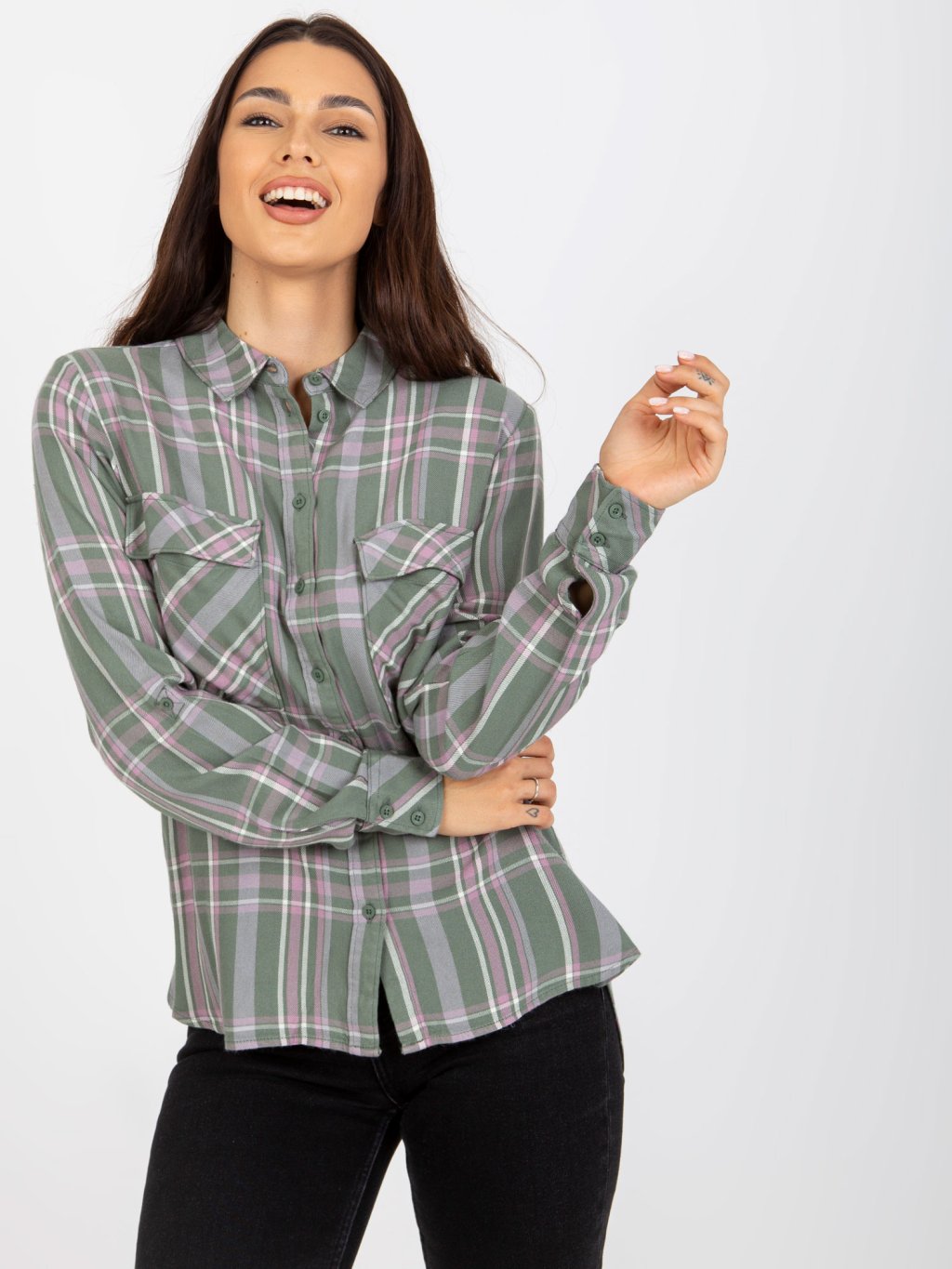 KHAKI KÁROVANÁ KOŠILE Z VISKÓZY