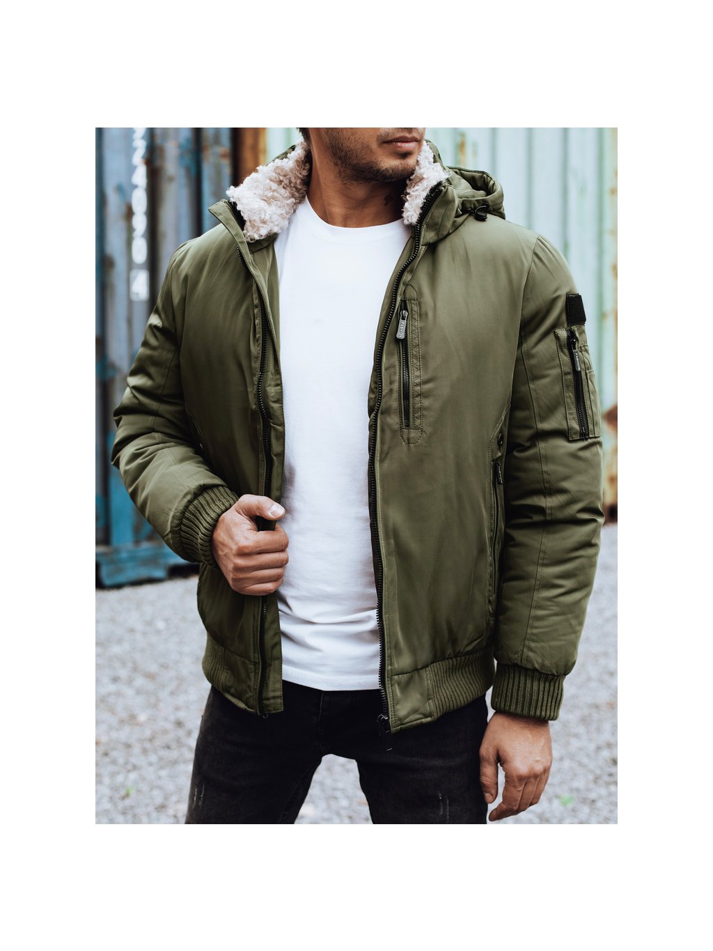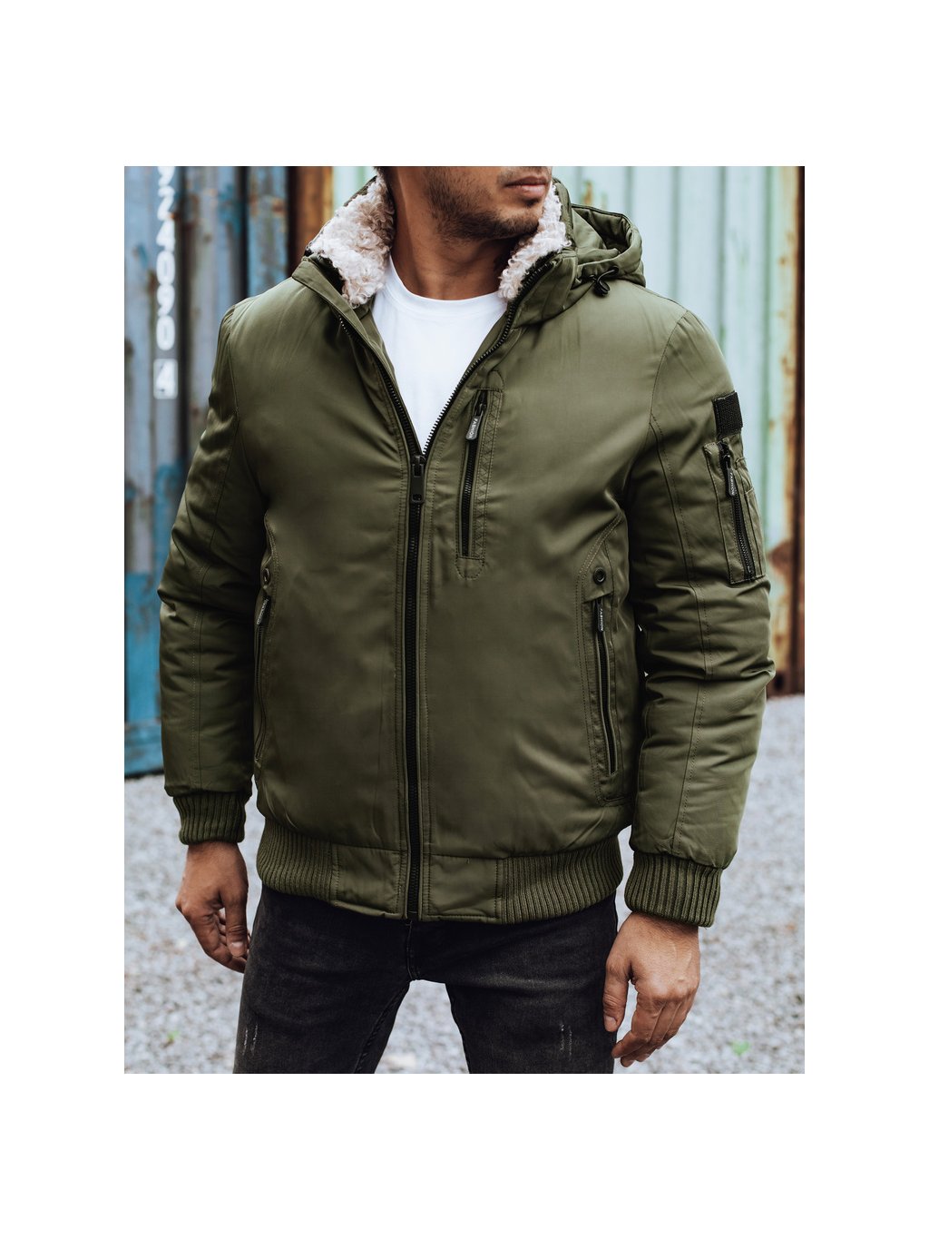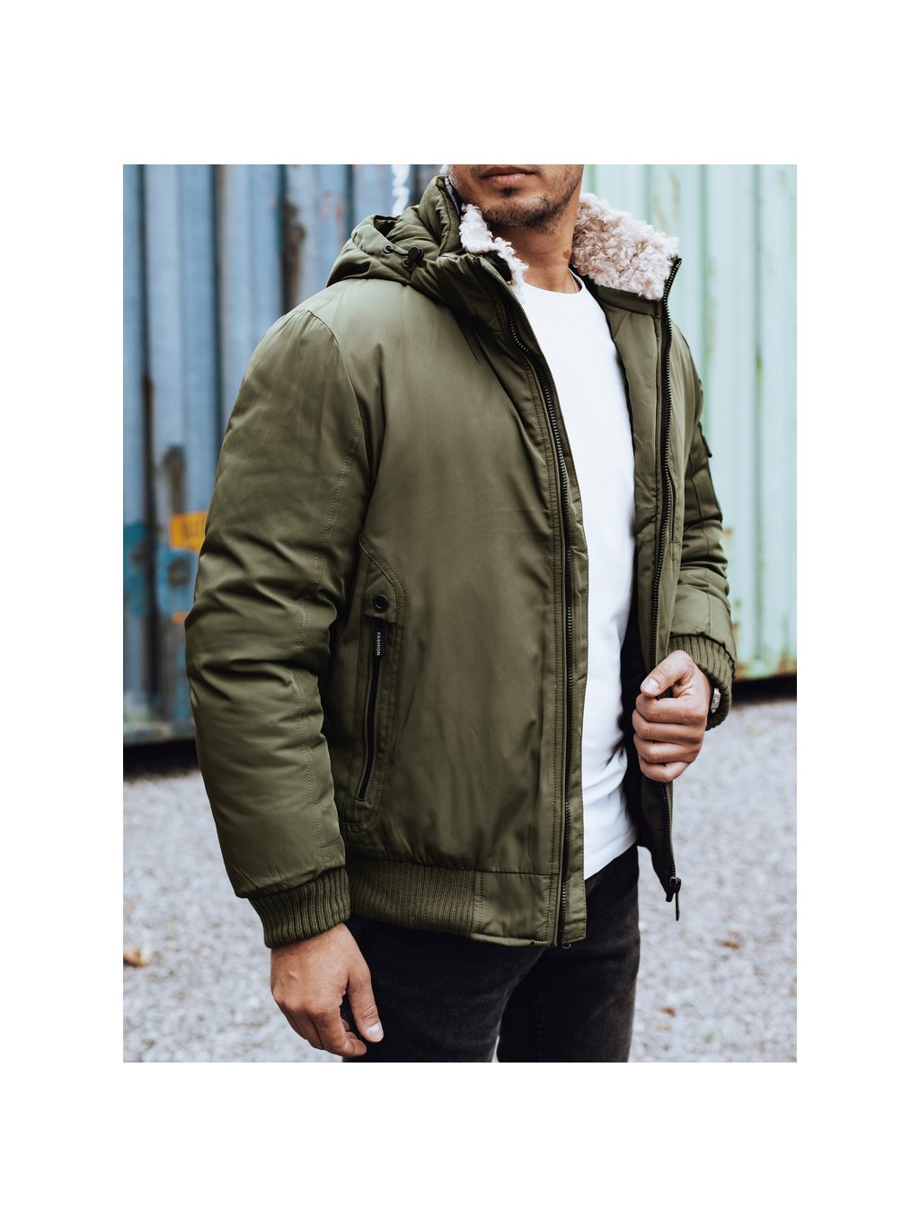 KHAKI PÁNSKÝ ZIMNÍ BOMBER S KAPUCÍ