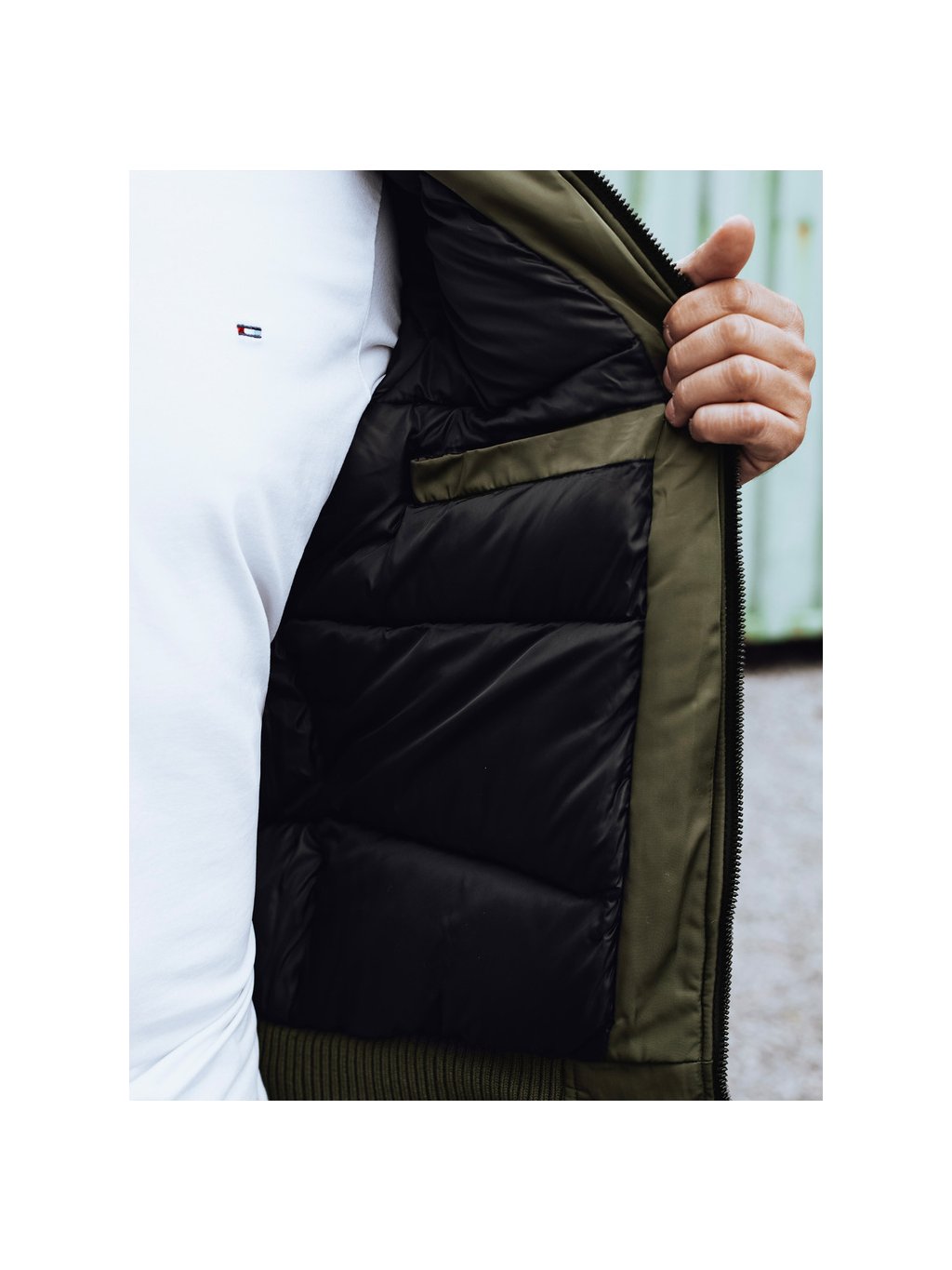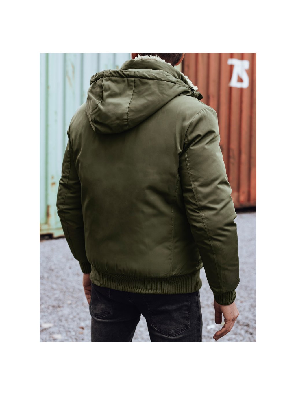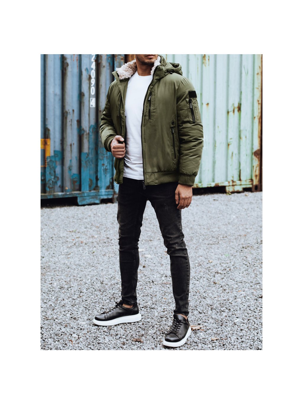 KHAKI PÁNSKÝ ZIMNÍ BOMBER S KAPUCÍ