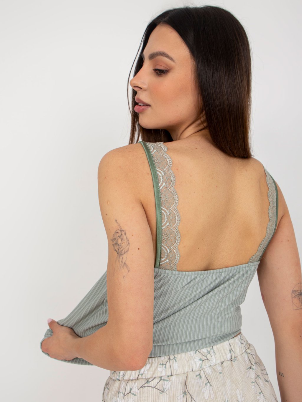 KHAKI ŽEBROVANÉ KRAŤASOVÉ PYŽAMO S V VÝSTŘIHEM