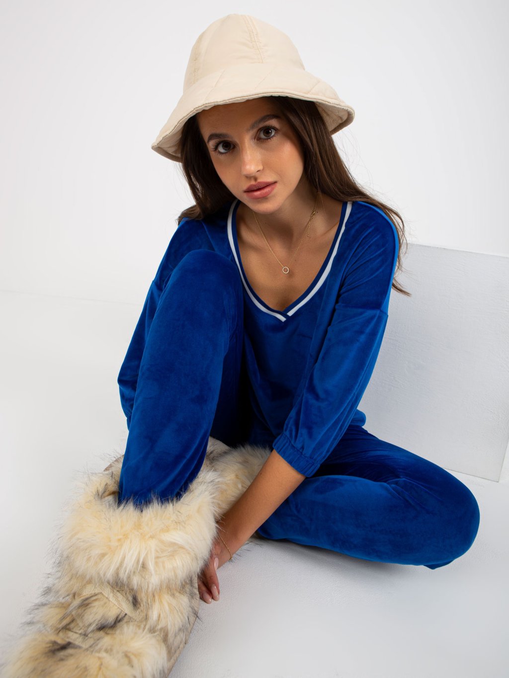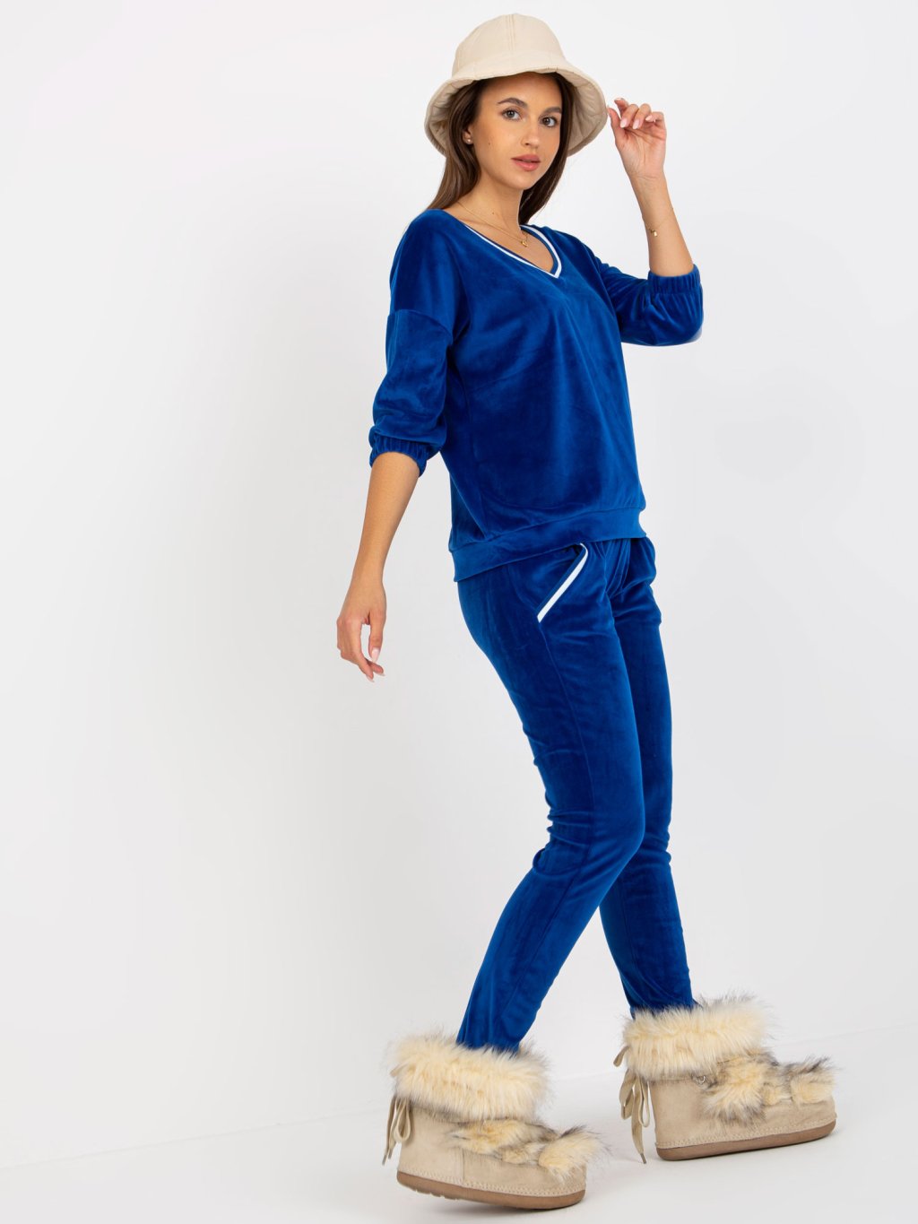KOBALTOVÝ VELUROVÝ KOMPLET TRIČKA A KALHOT S LEMOVÁNÍM