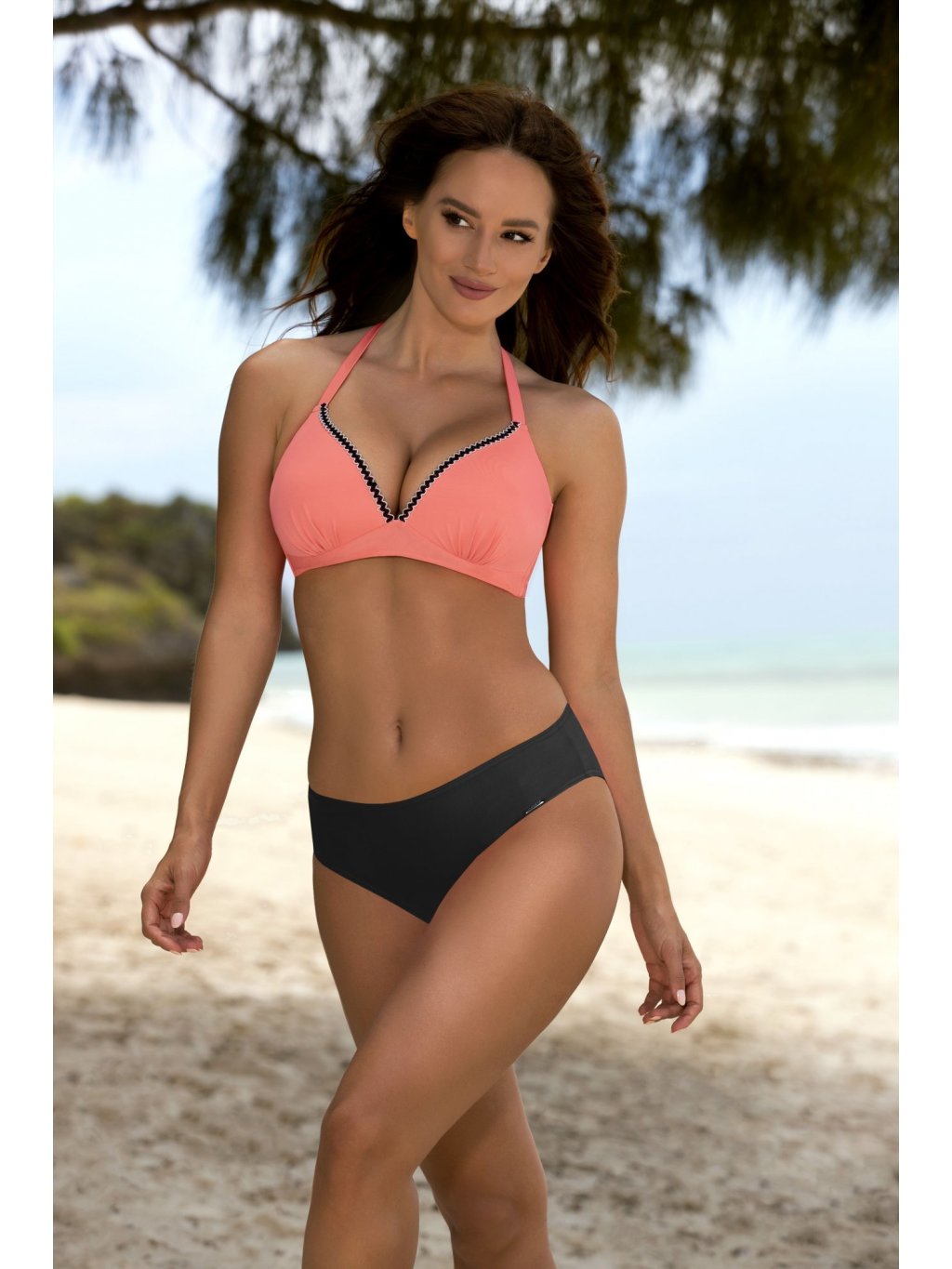 KORÁLOVĚ-ČERNÉ PLAVKY S OZDOBNÝM LEMEM KOKO