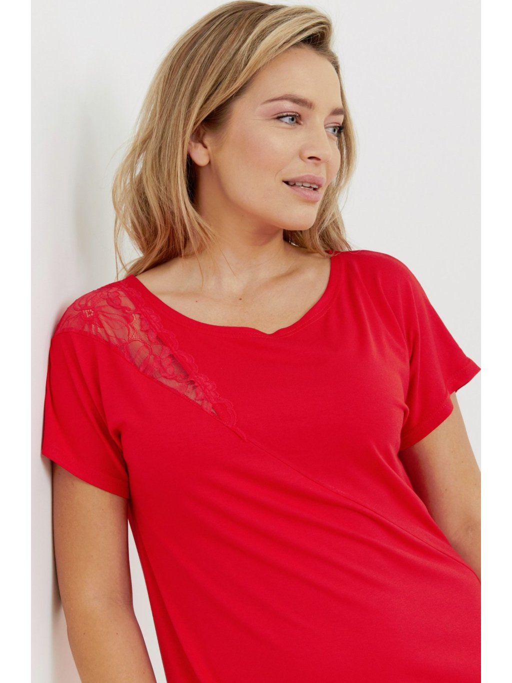 - krajková vsadka na jednom rameni