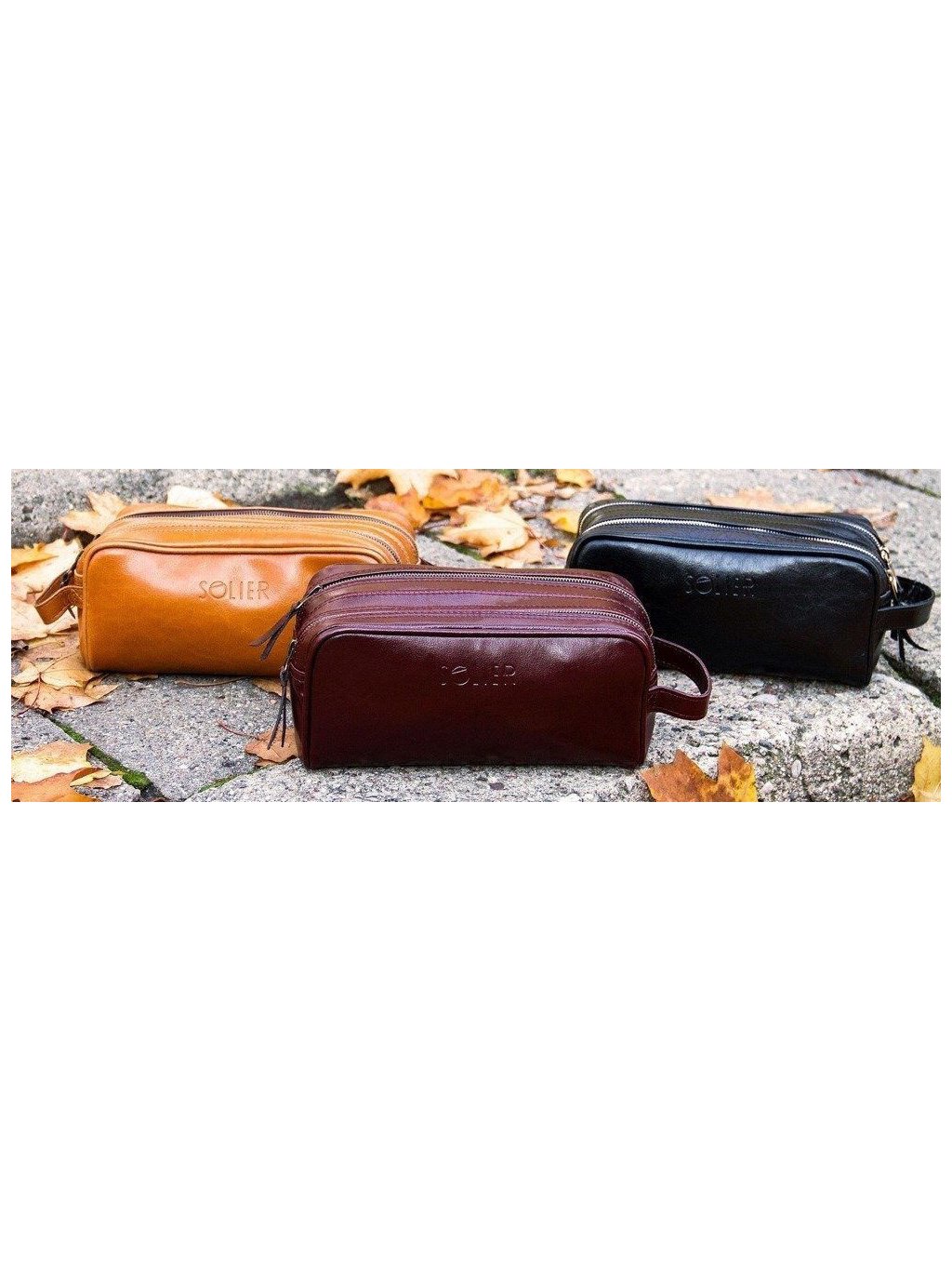KOSMETICKÁ KOŽENÁ HNĚDÁ TAŠKA SOLIER