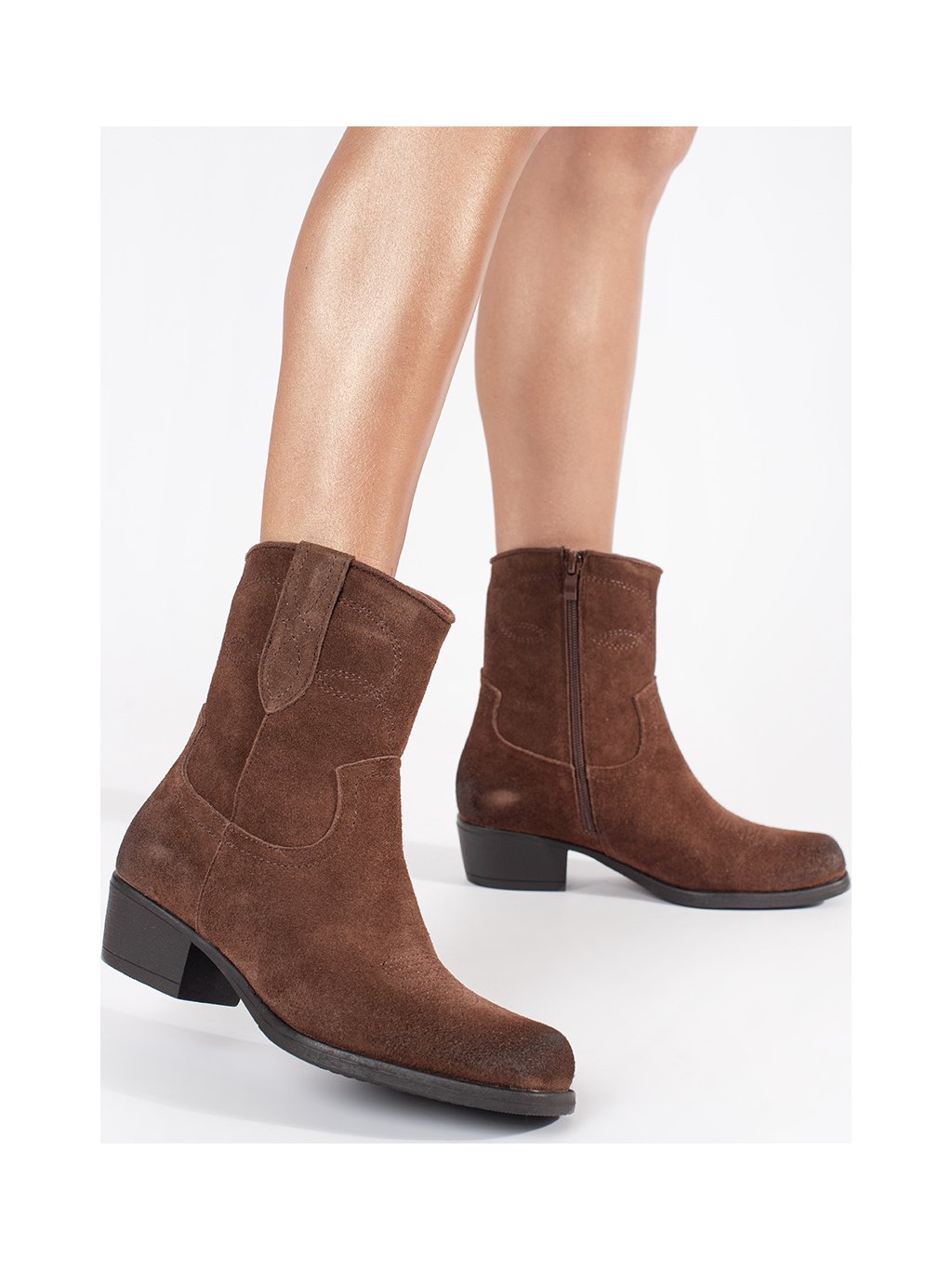 KOŽENÉ HNĚDÉ KOTNÍKOVÉ KOVBOJKY SERGIO LEONE, PODPATEK 4 CM