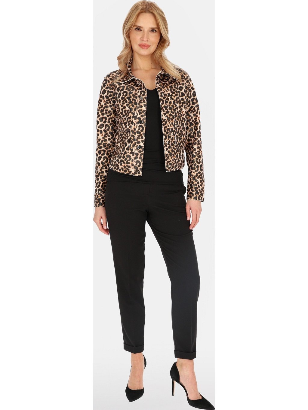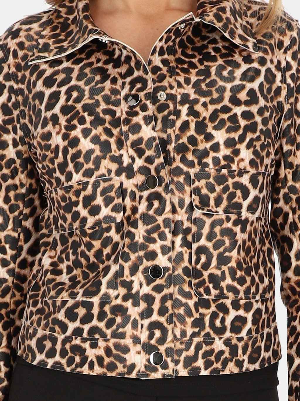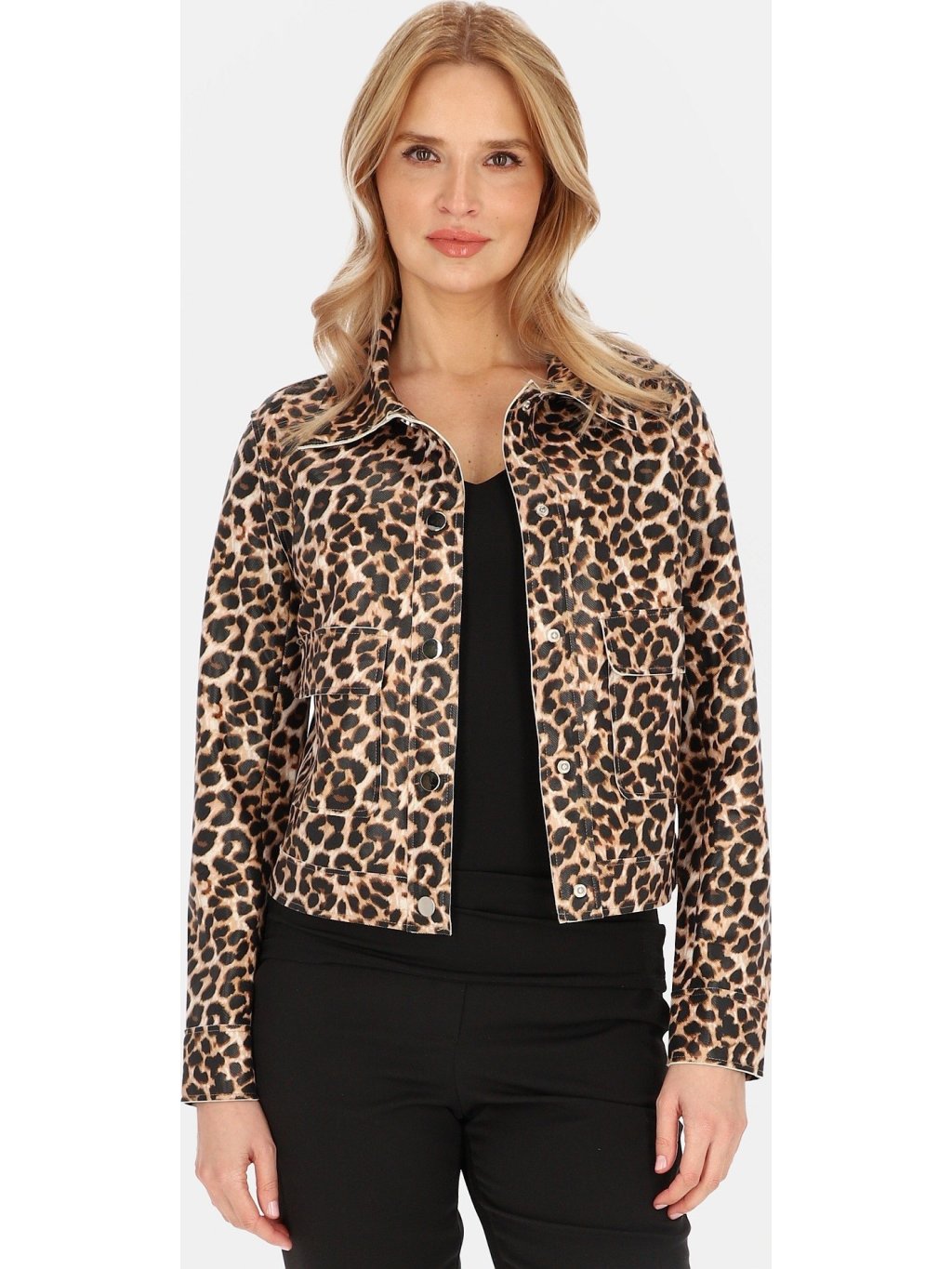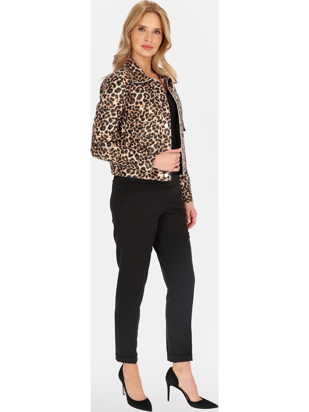 KRÁTKÁ DÁMSKÁ PŘECHODOVÁ BUNDA S LEOPARDÍM VZOREM