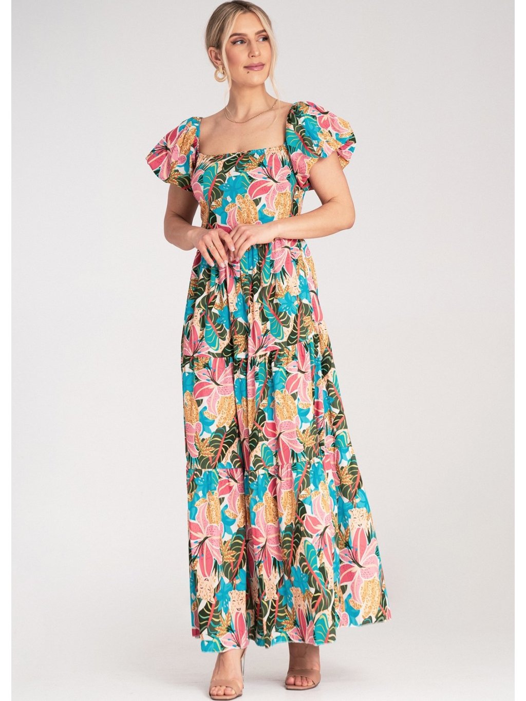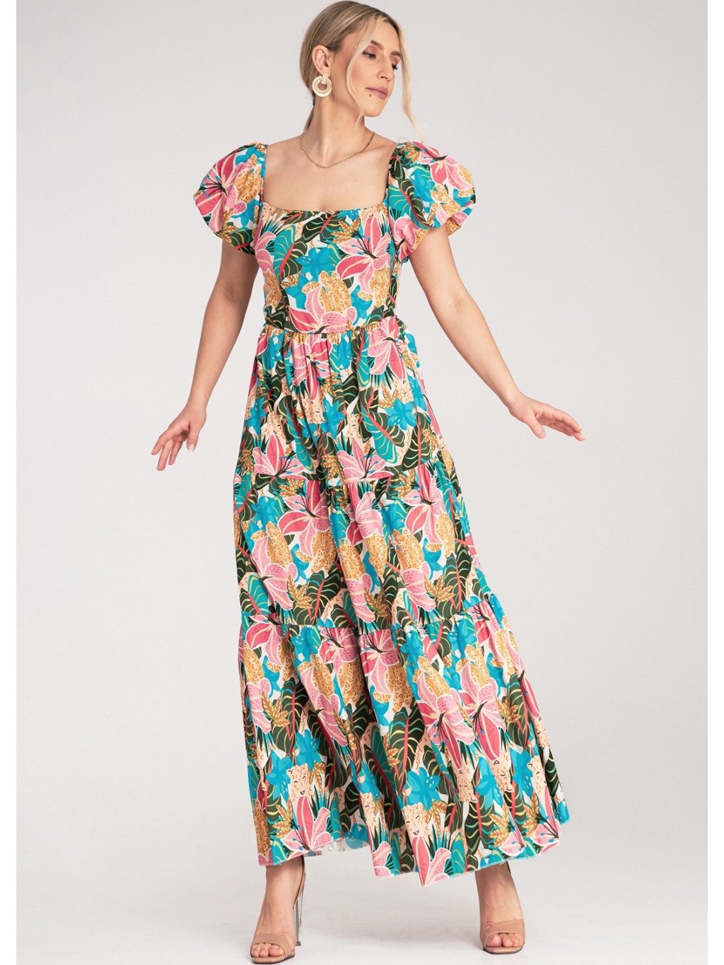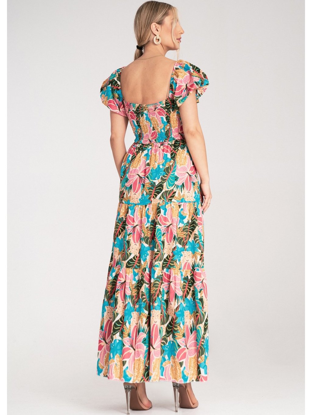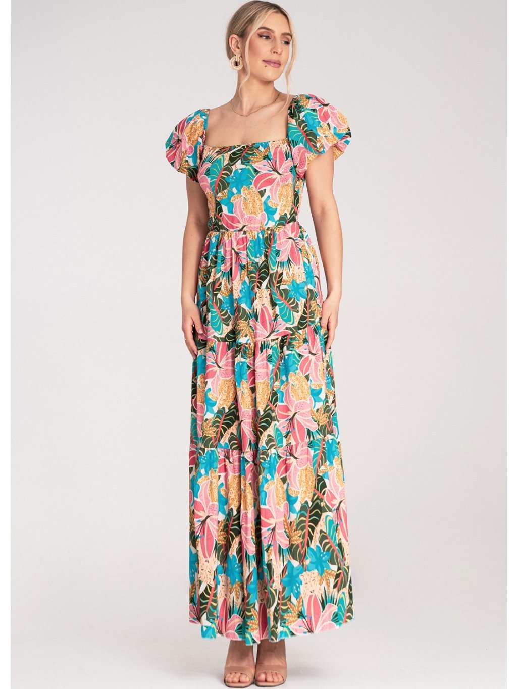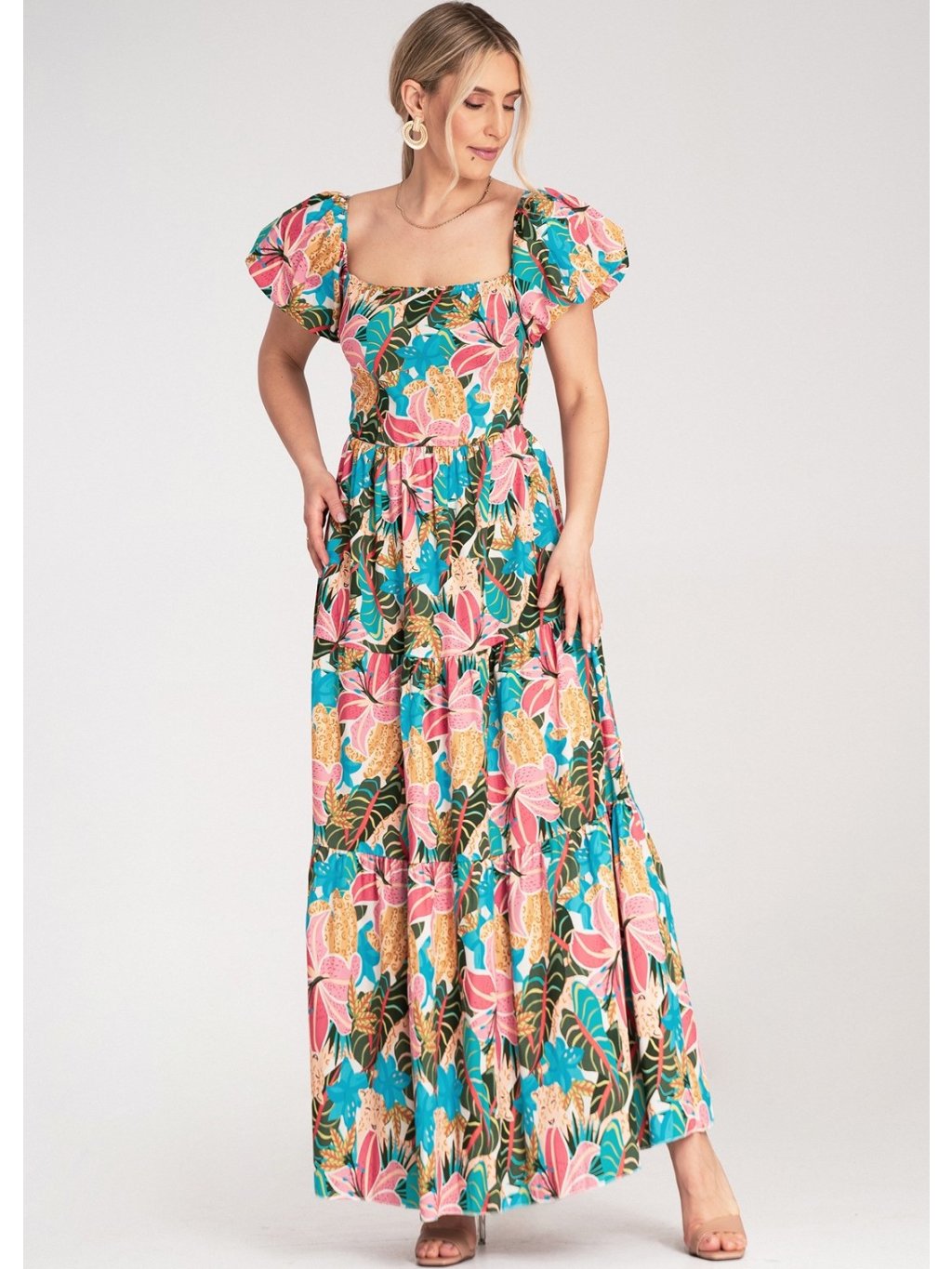 LETNÍ VZOROVANÉ MAXI ŠATY S KRÁTKÝMI RUKÁVY