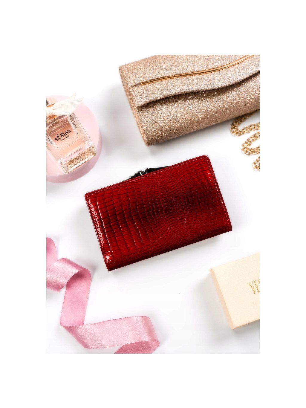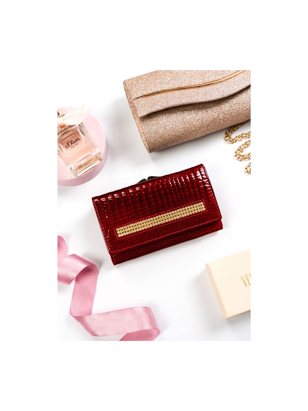 LORENTI VÍNOVÁ DÁMSKÁ LAKOVANÁ PENĚŽENKA SE ZIRKONY S314