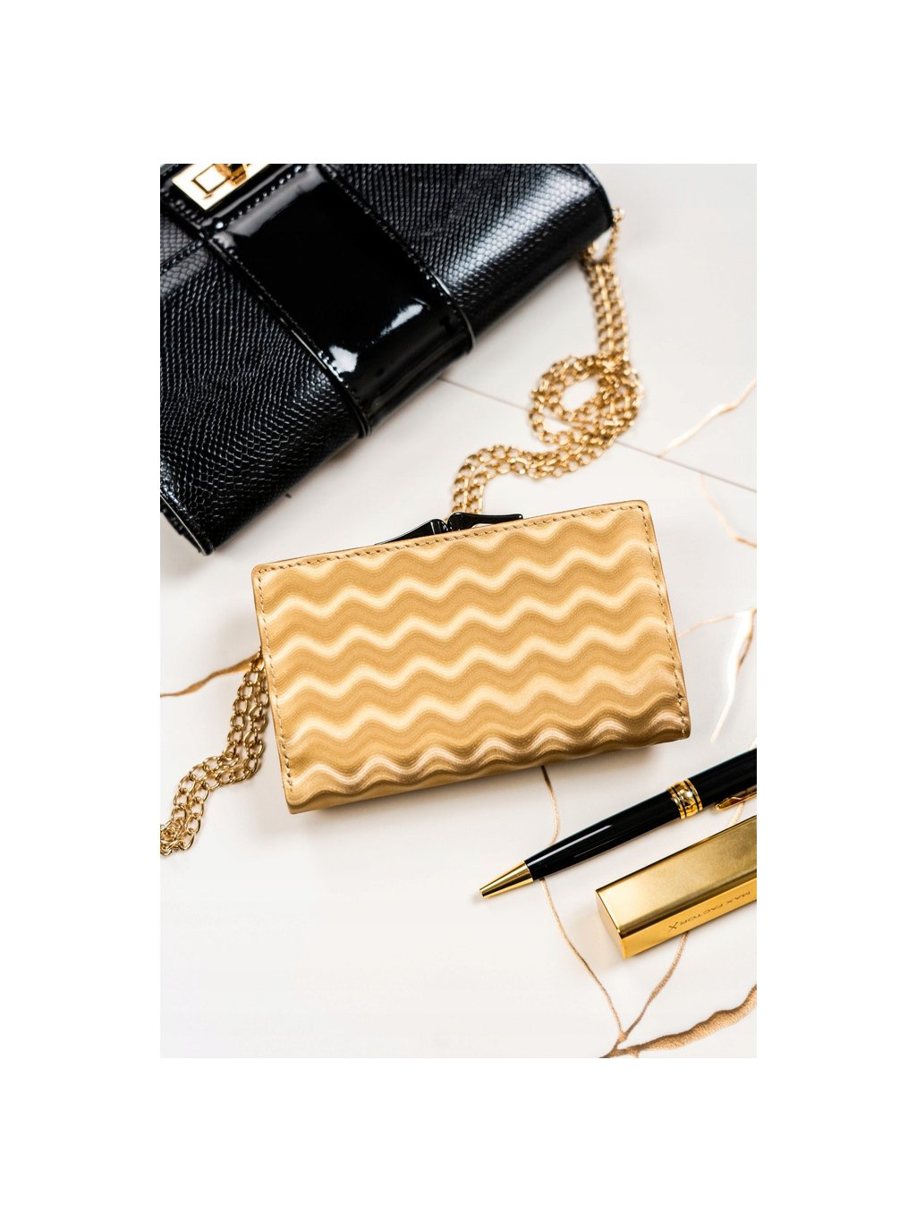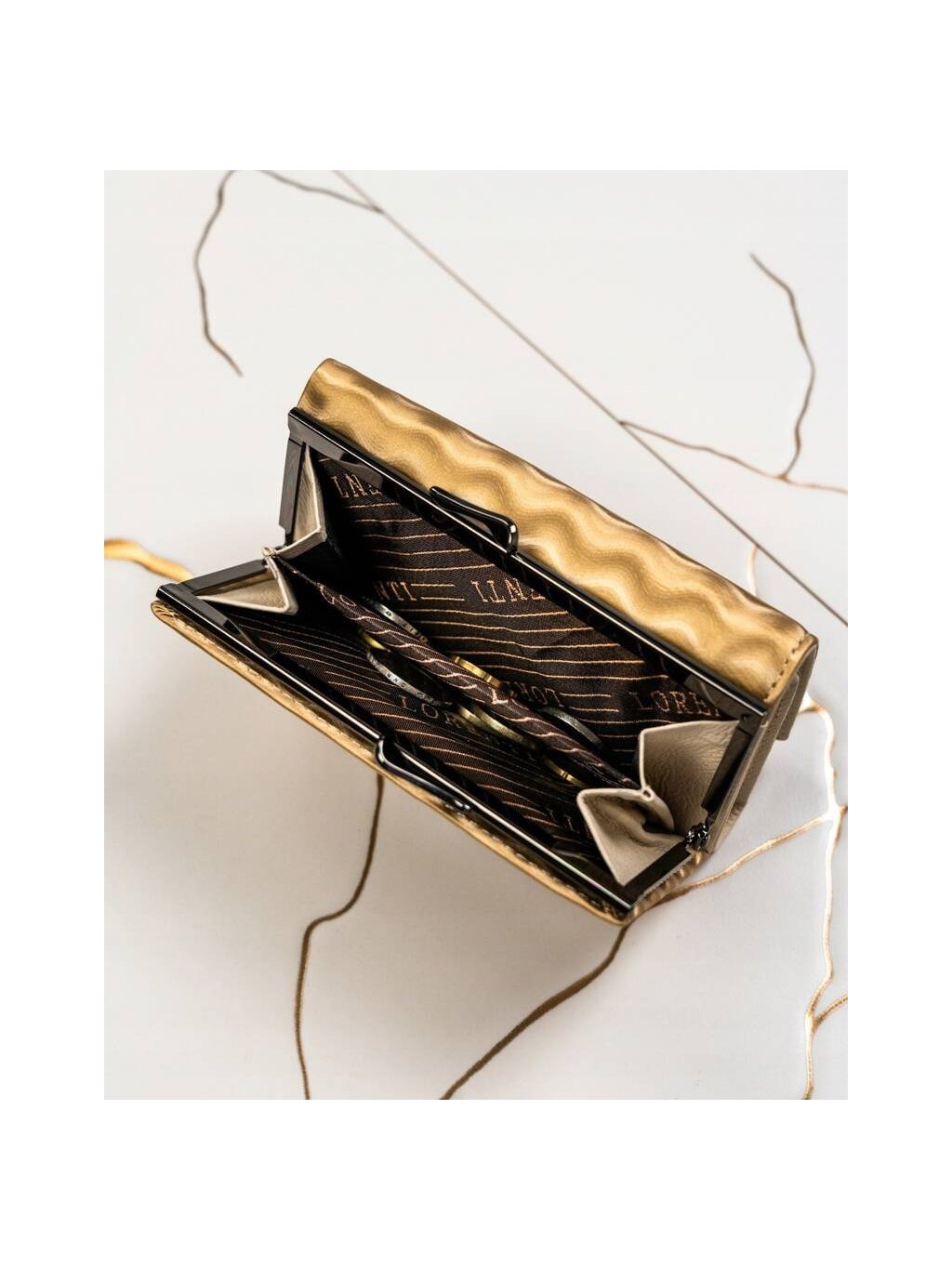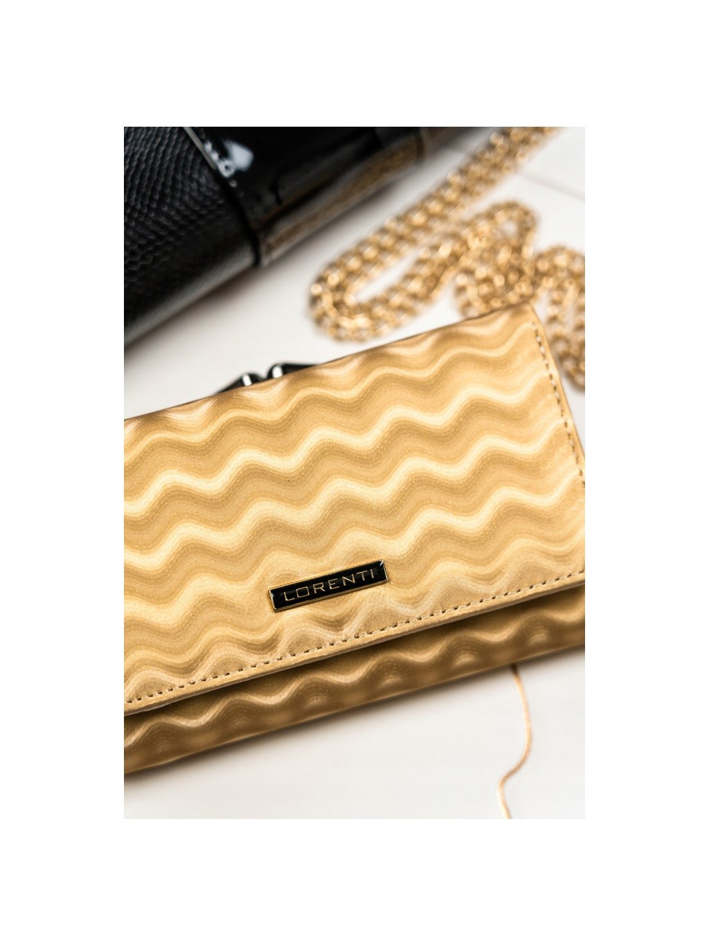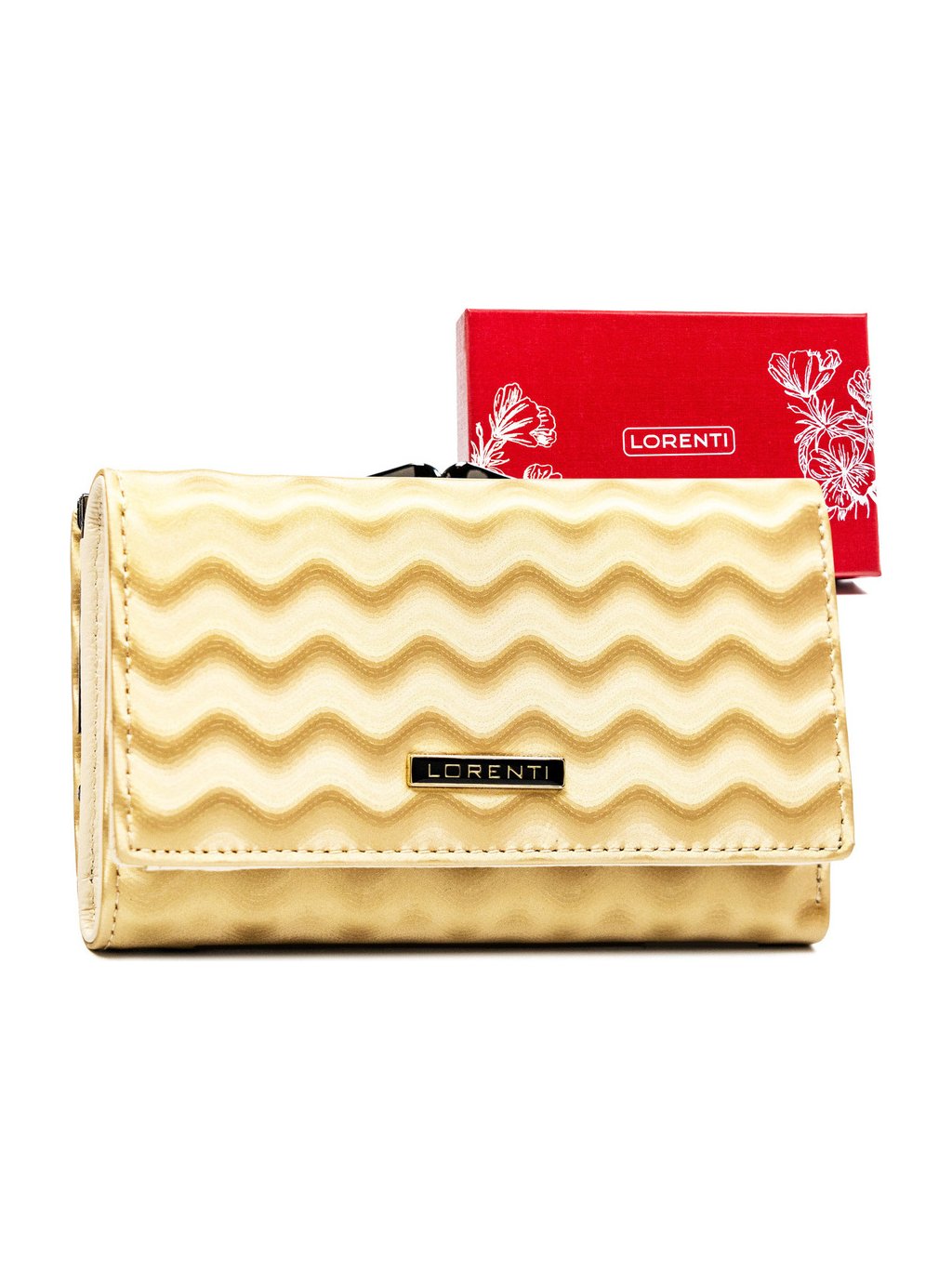 LORENTI ZLATÁ STŘEDNÍ KOŽENÁ PENĚŽENKA S VLNKOVÝM VZOREM S267