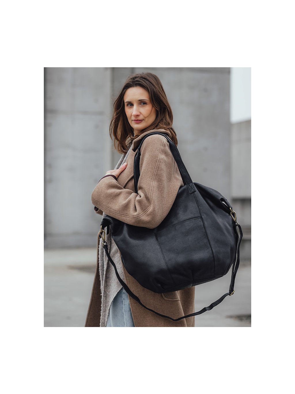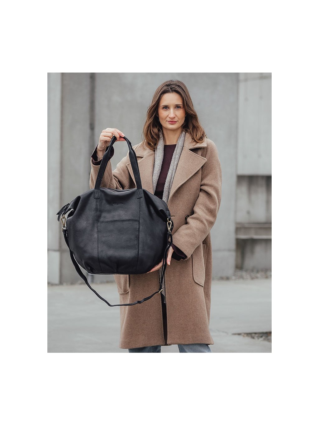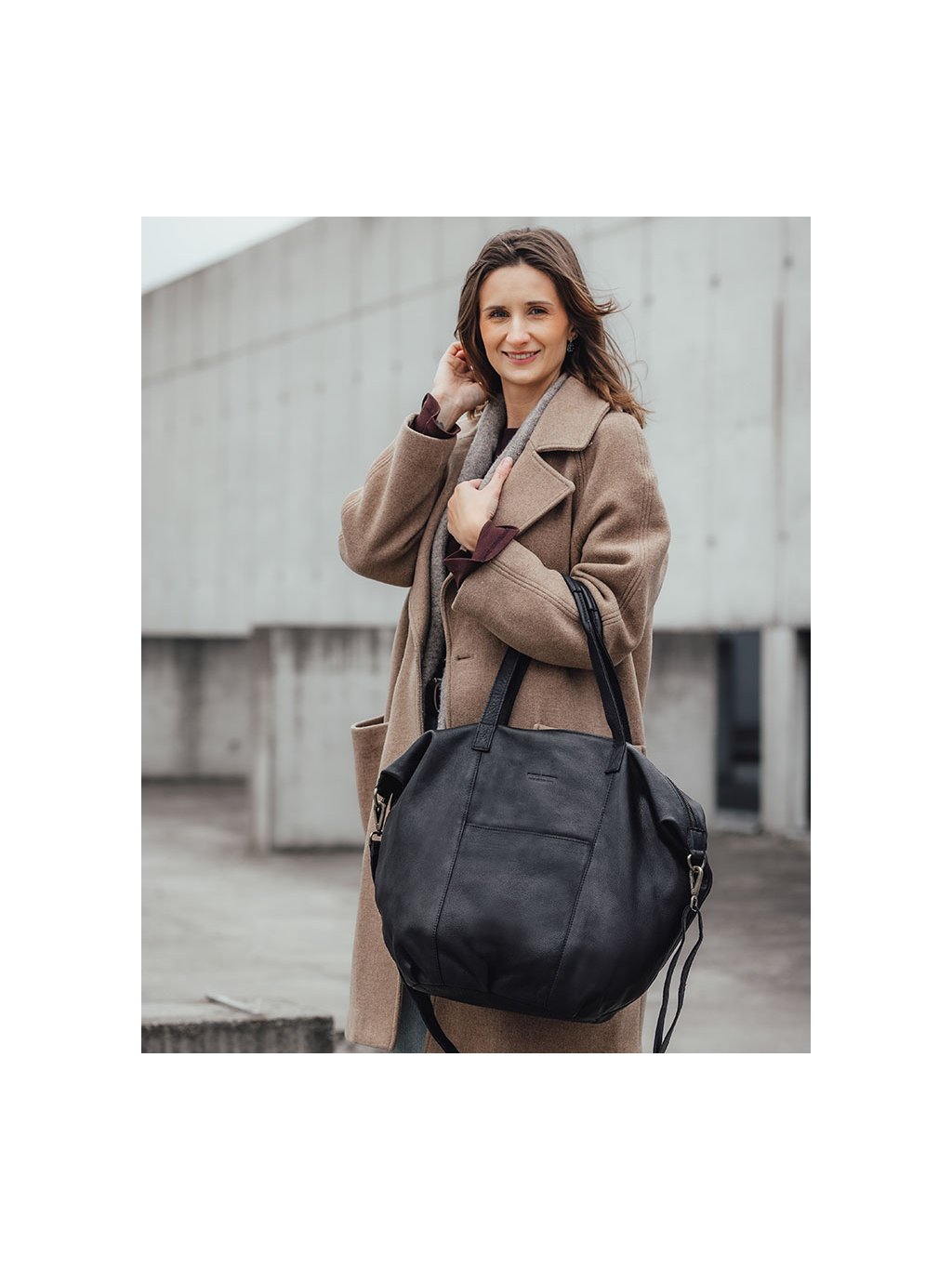 MARCO MAZZINI ČERNÁ KOŽENÁ SHOPPER BAG S PLETENOU VSADKOU