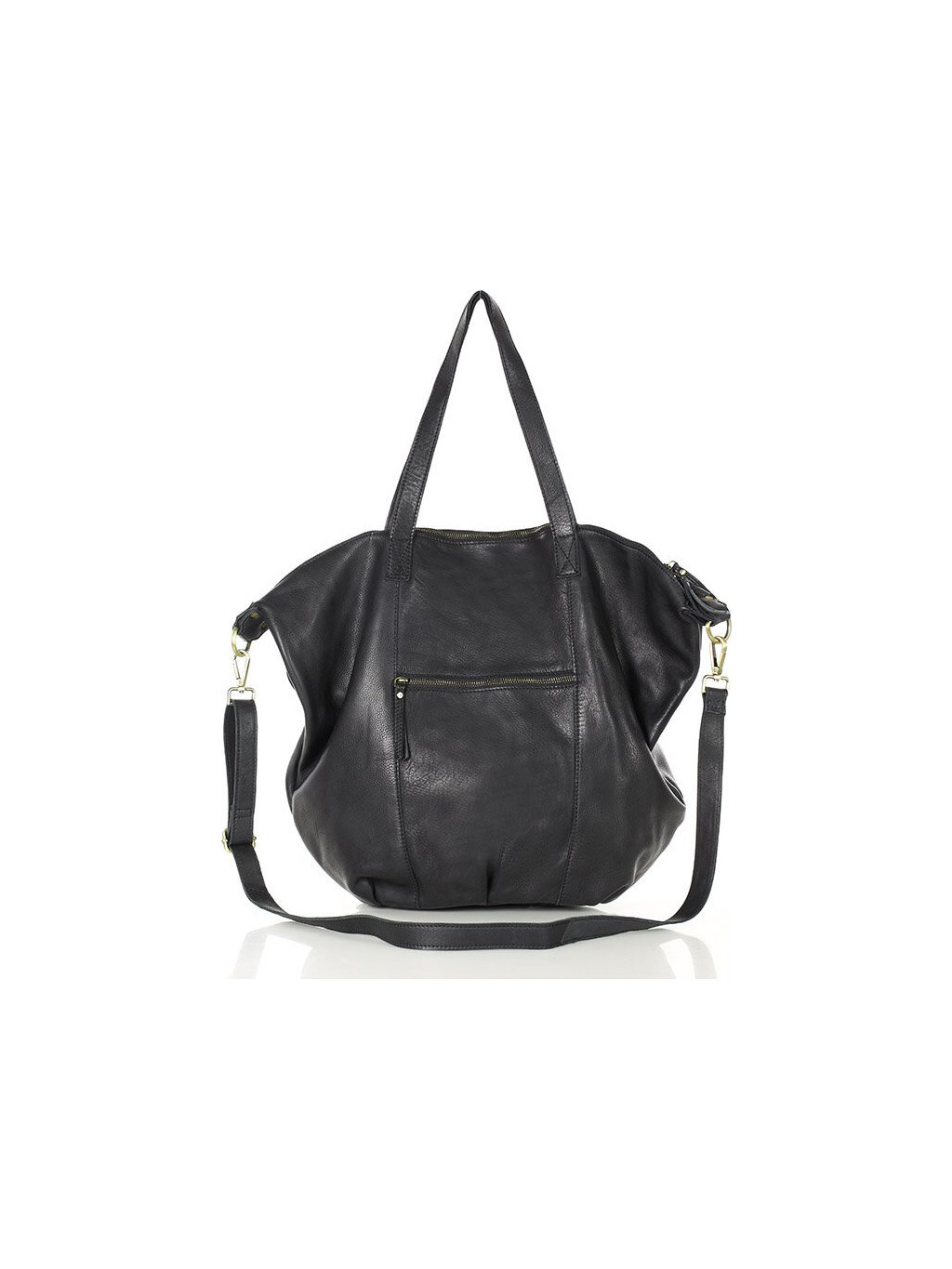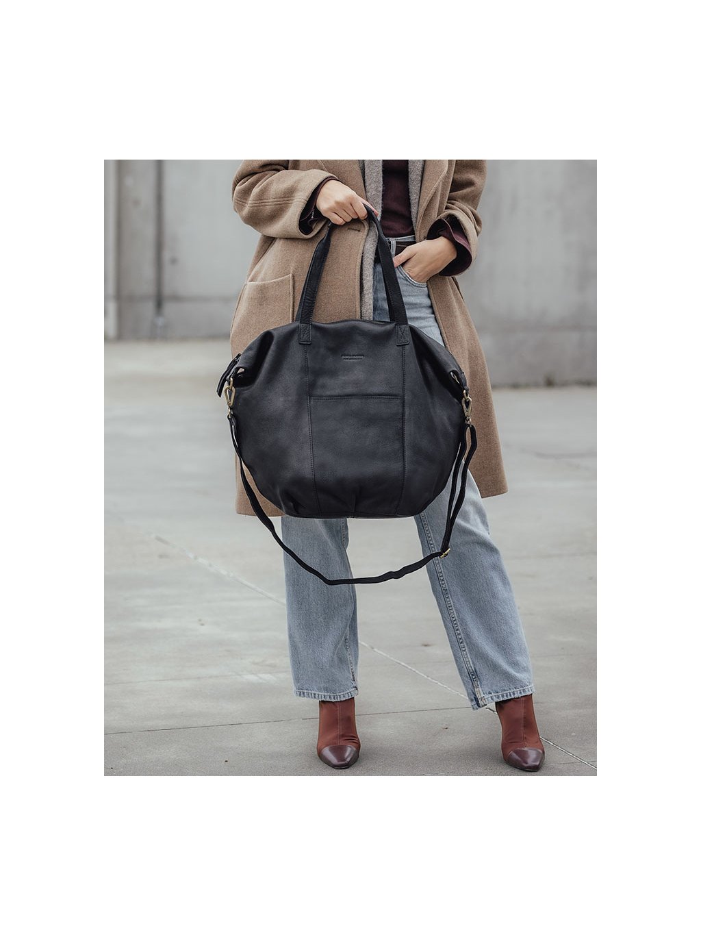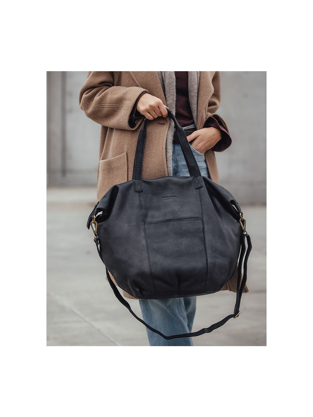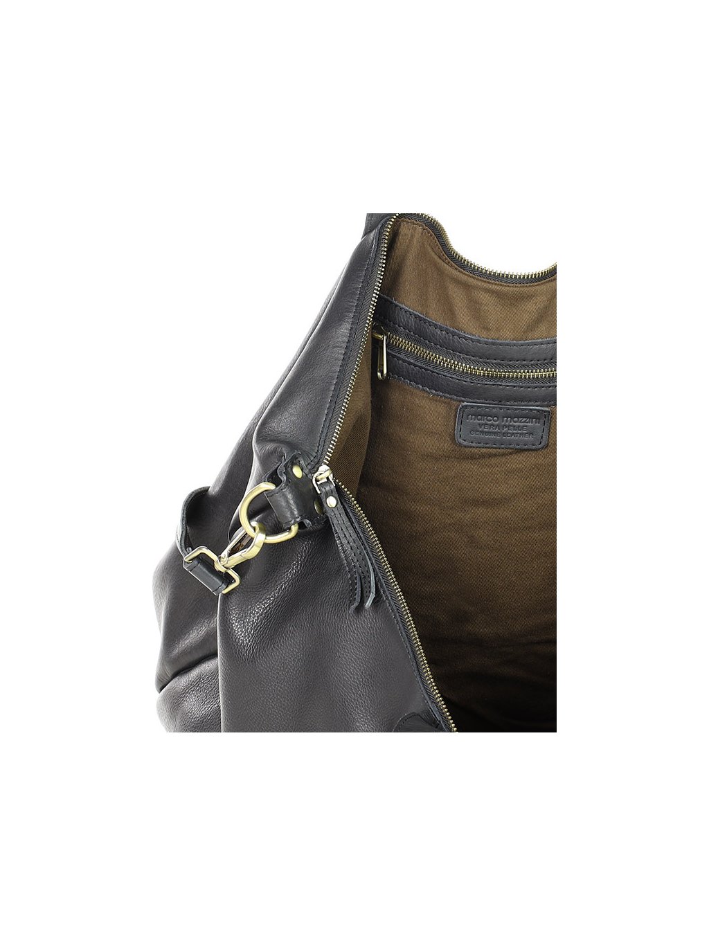 MARCO MAZZINI ČERNÁ KOŽENÁ SHOPPER BAG S PLETENOU VSADKOU