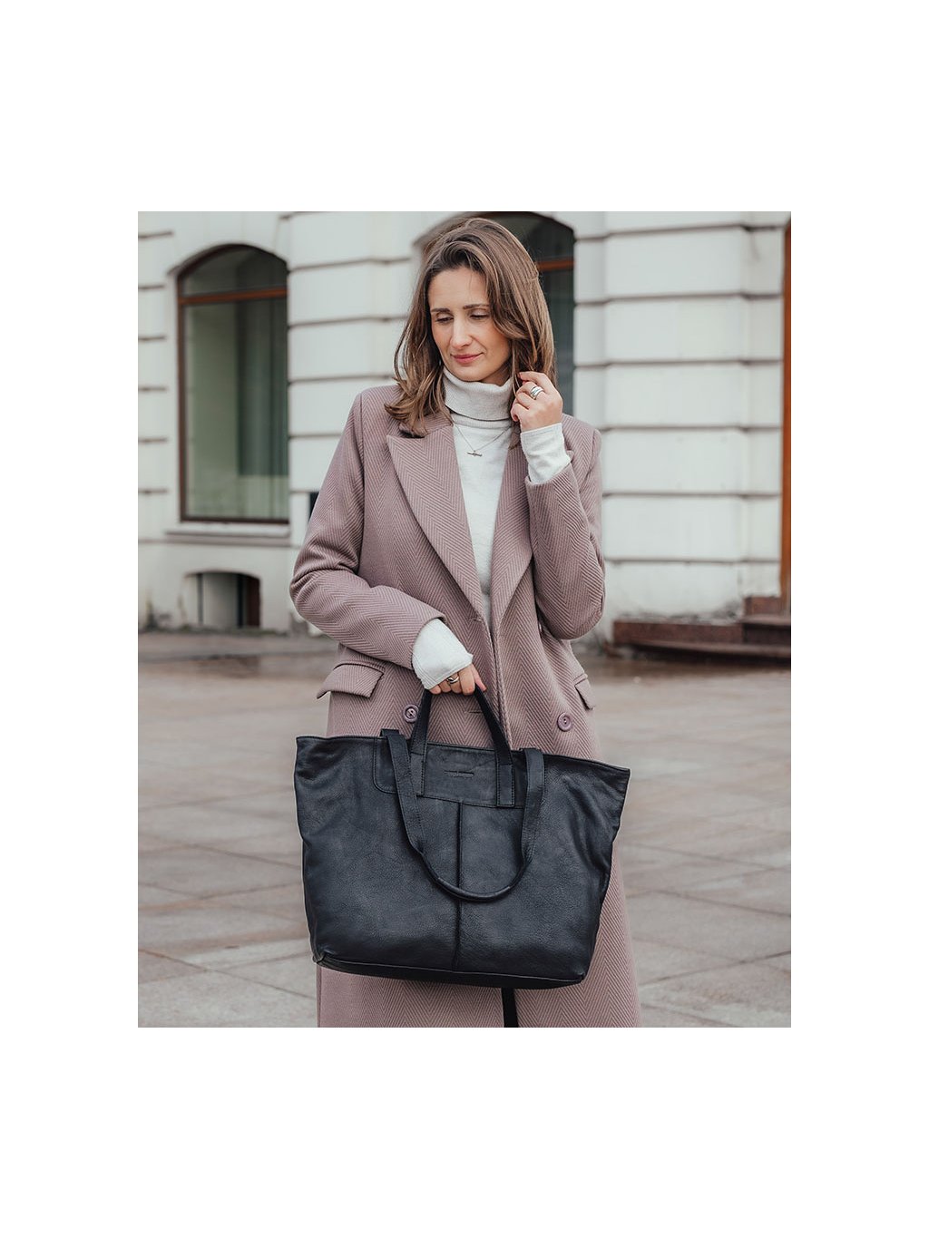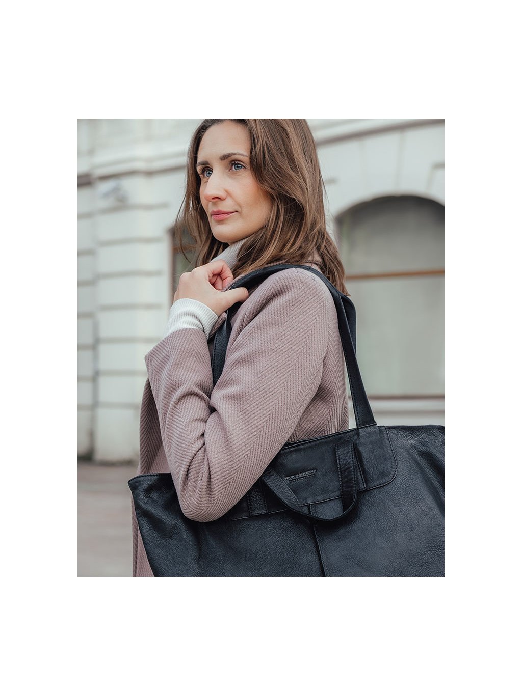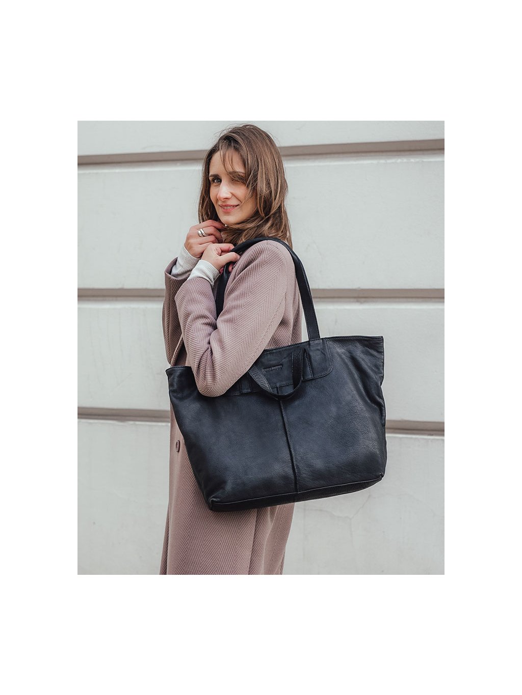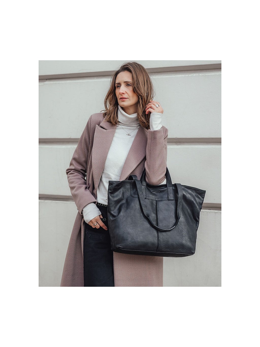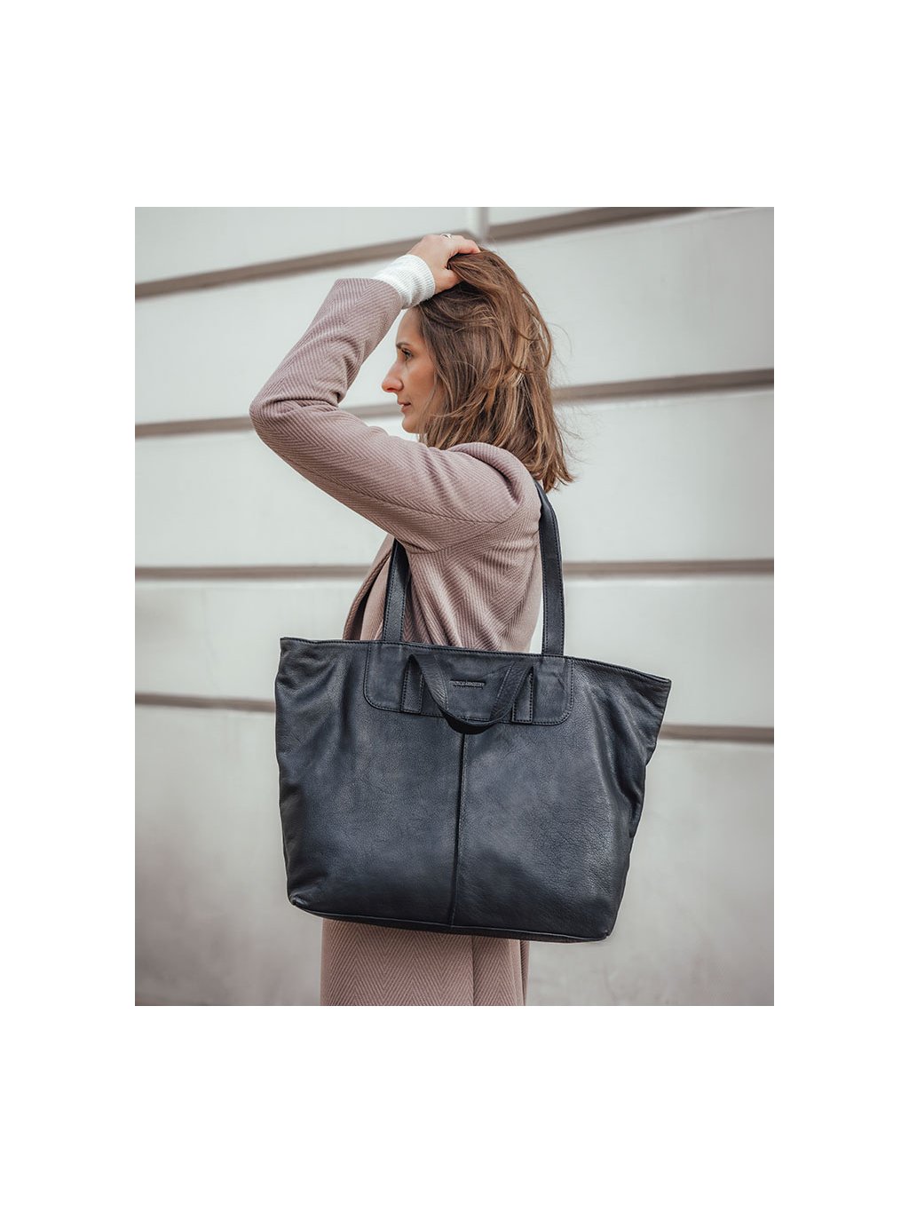 MARCO MAZZINI ČERNÁ SHOPPER KOŽENÁ KABELKA