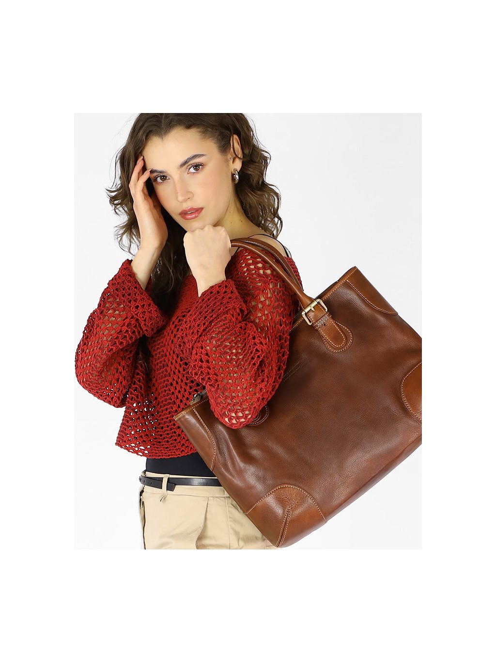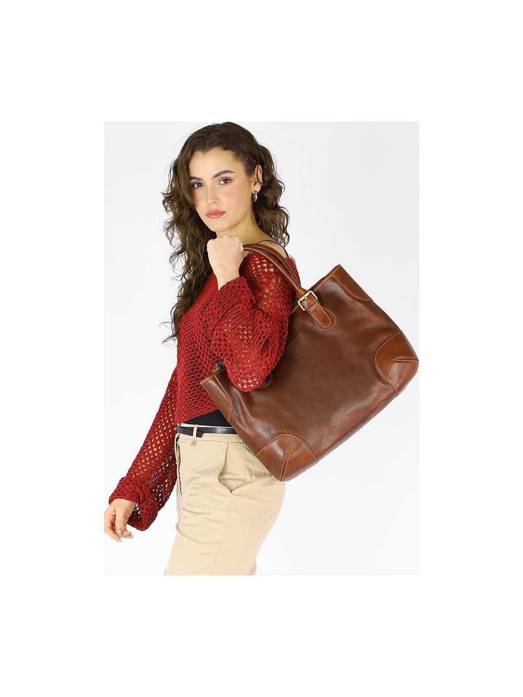 MARCO MAZZINI HNĚDÁ KOŽENÁ SHOPPER KABELKA
