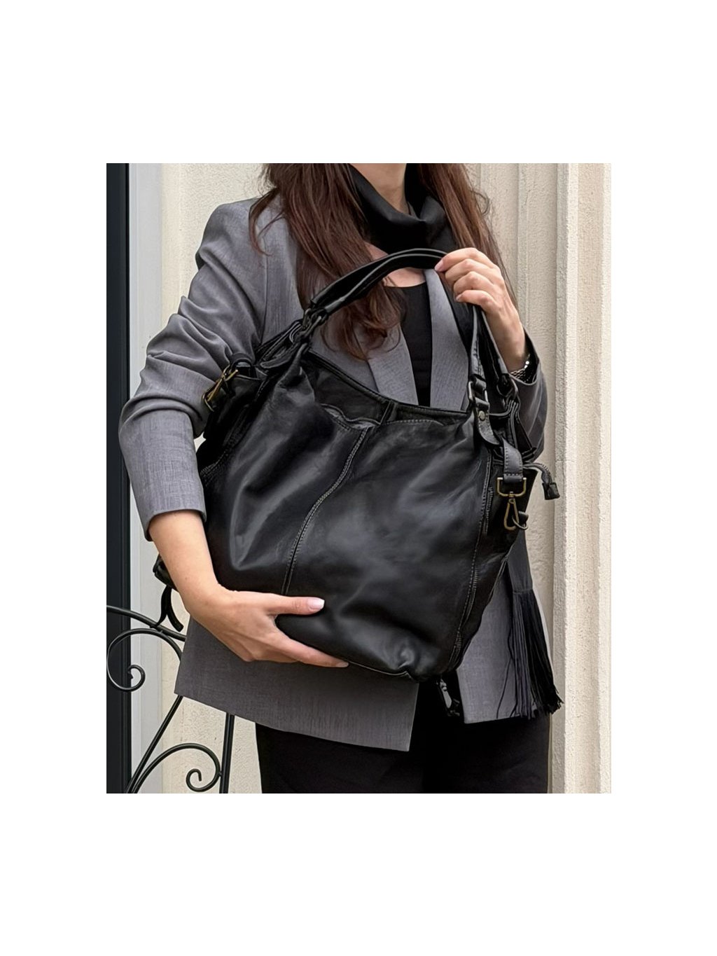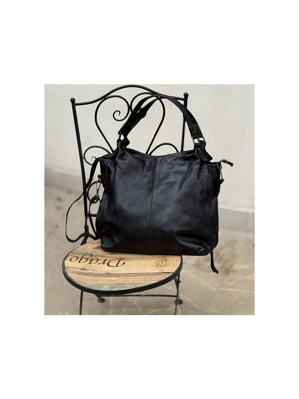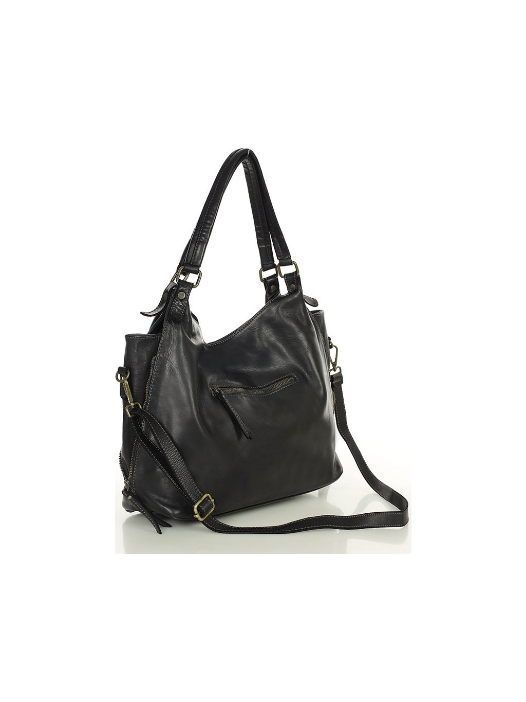 MARCO MAZZINI ČERNÁ KOŽENÁ KABELKA