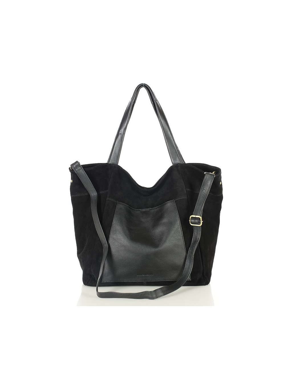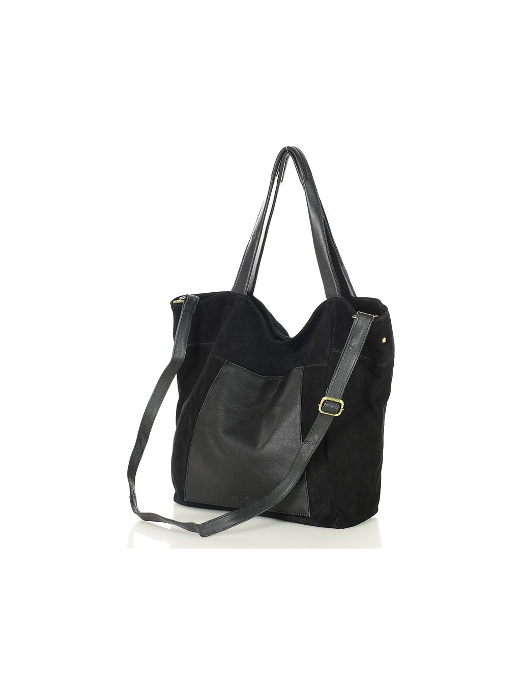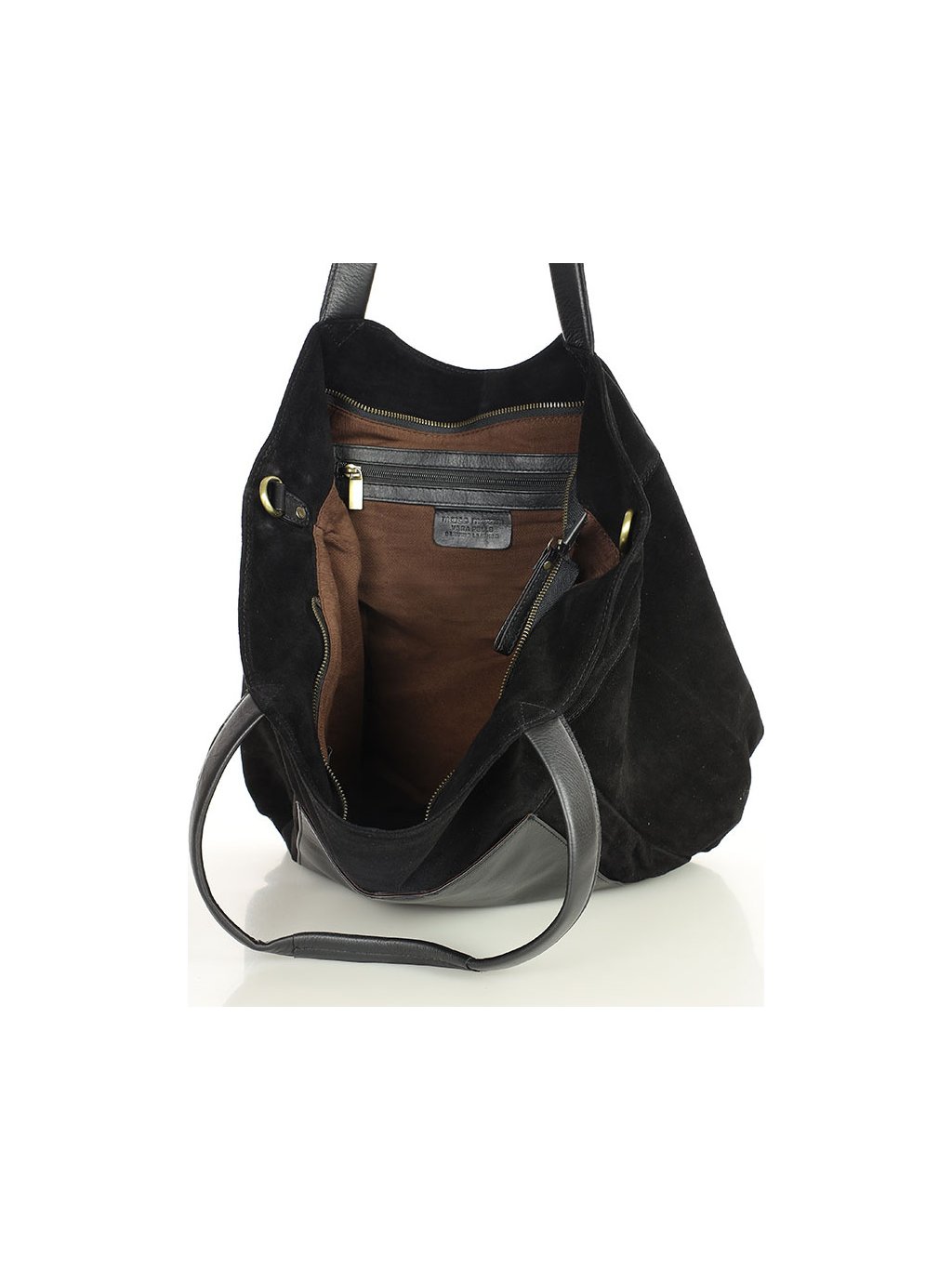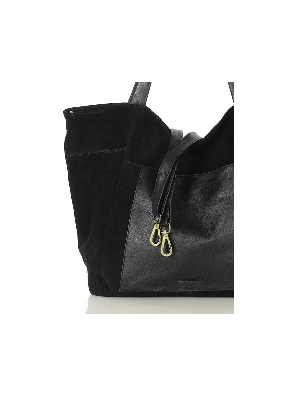 MARCO MAZZINI VELKÁ SEMIŠOVÁ KOŽENÁ SHOPPER KABELKA S KAPSOU ČERNÁ