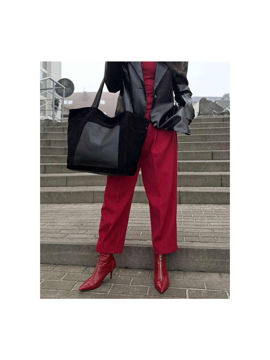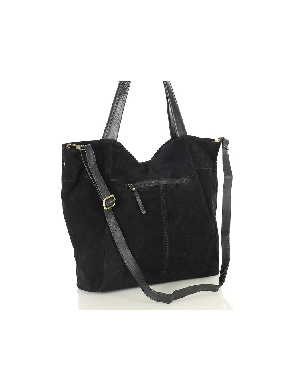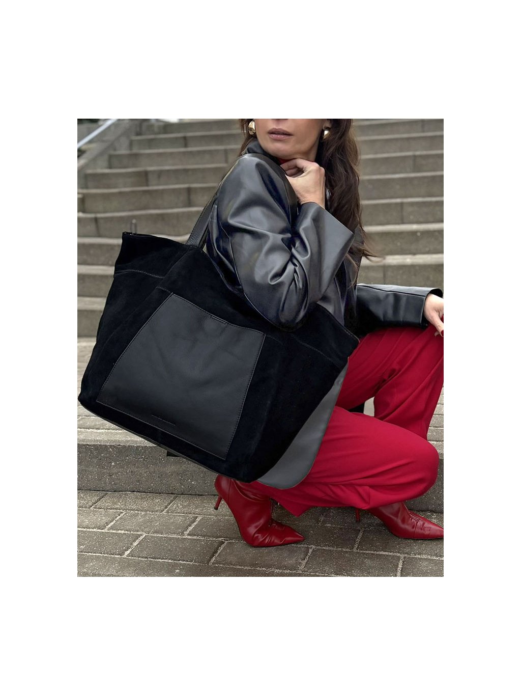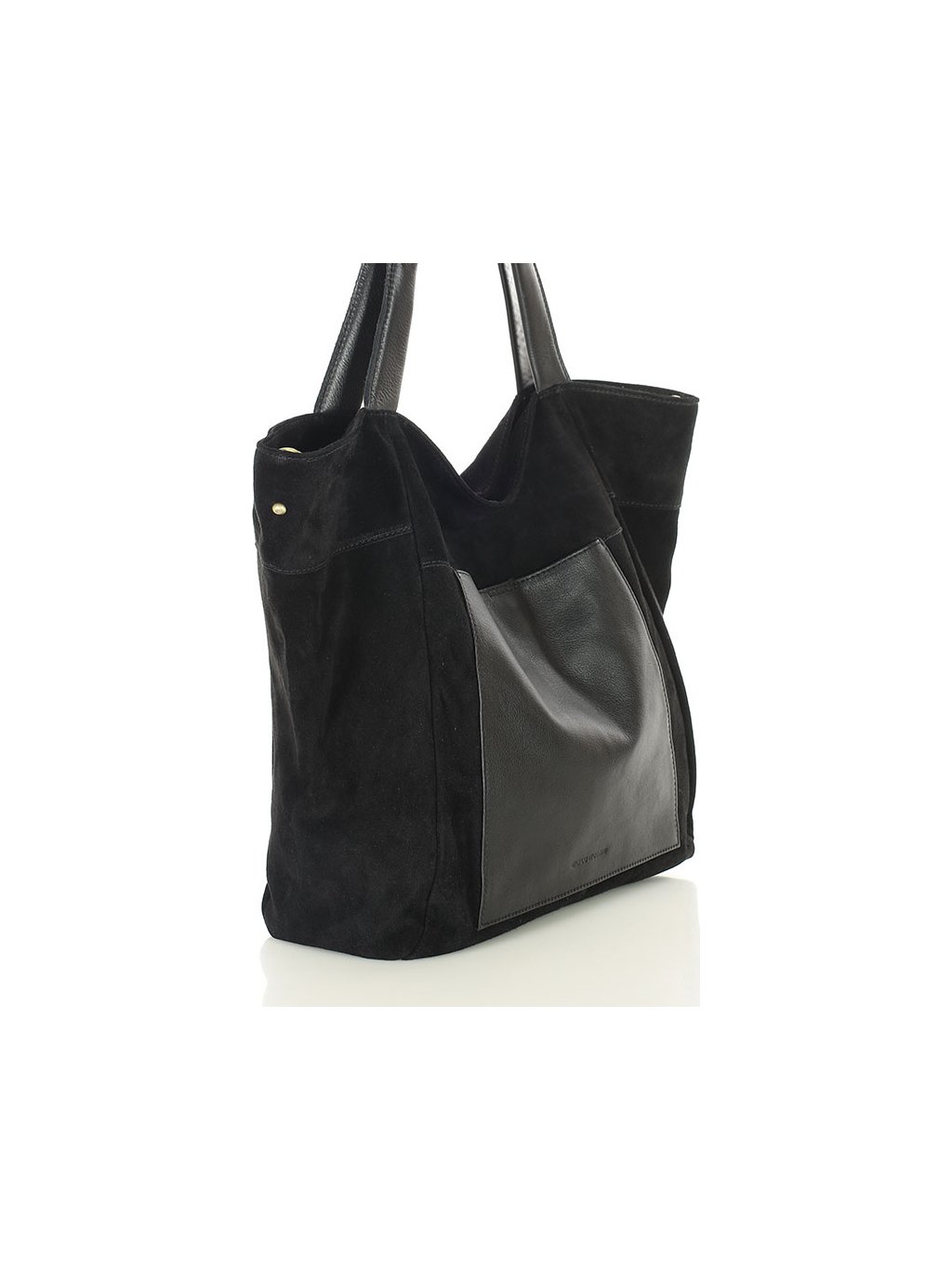 MARCO MAZZINI VELKÁ SEMIŠOVÁ KOŽENÁ SHOPPER KABELKA S KAPSOU ČERNÁ