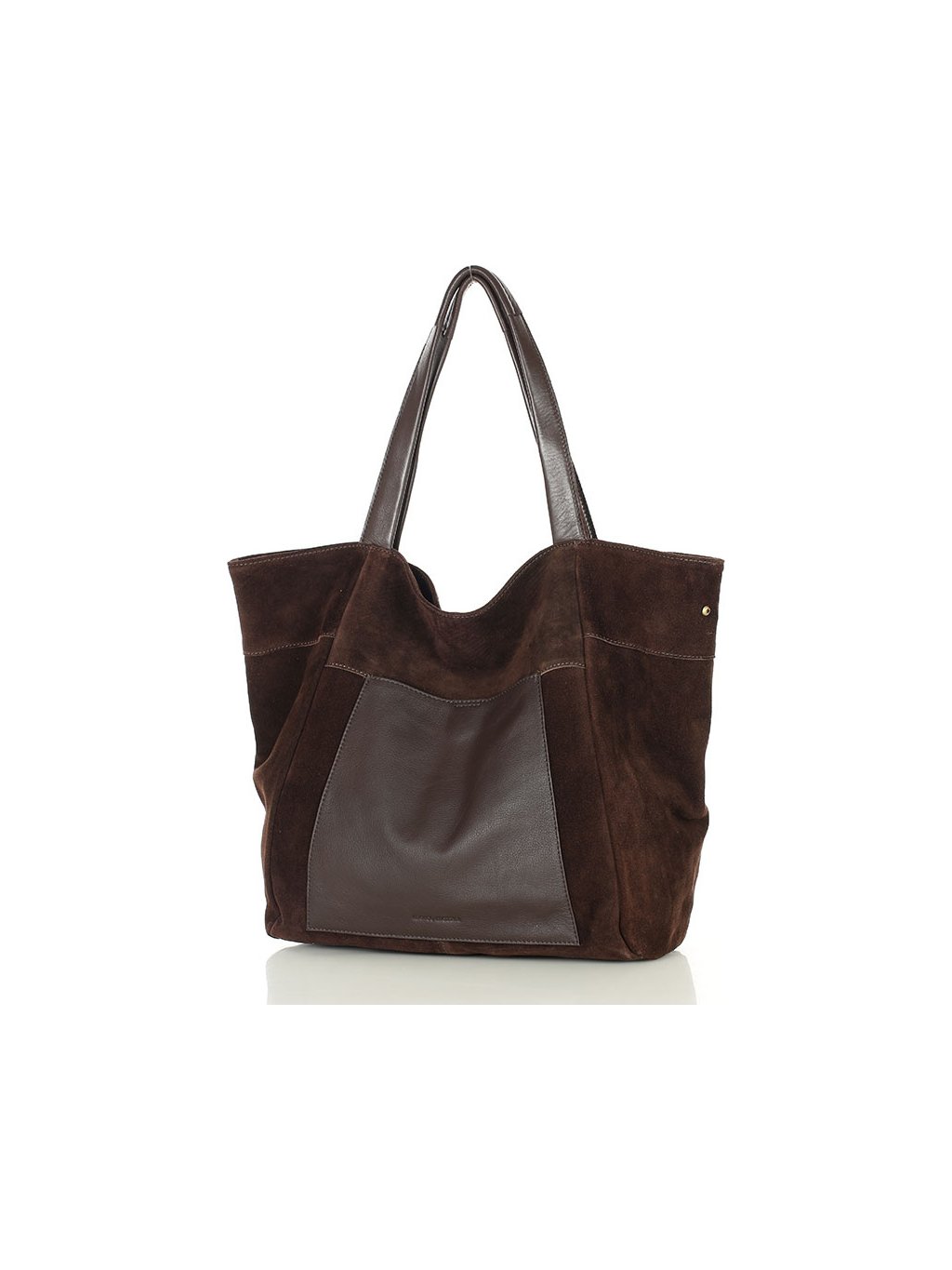 MARCO MAZZINI VELKÁ SEMIŠOVÁ KOŽENÁ SHOPPER KABELKA S KAPSOU TMAVĚ HNĚDÁ