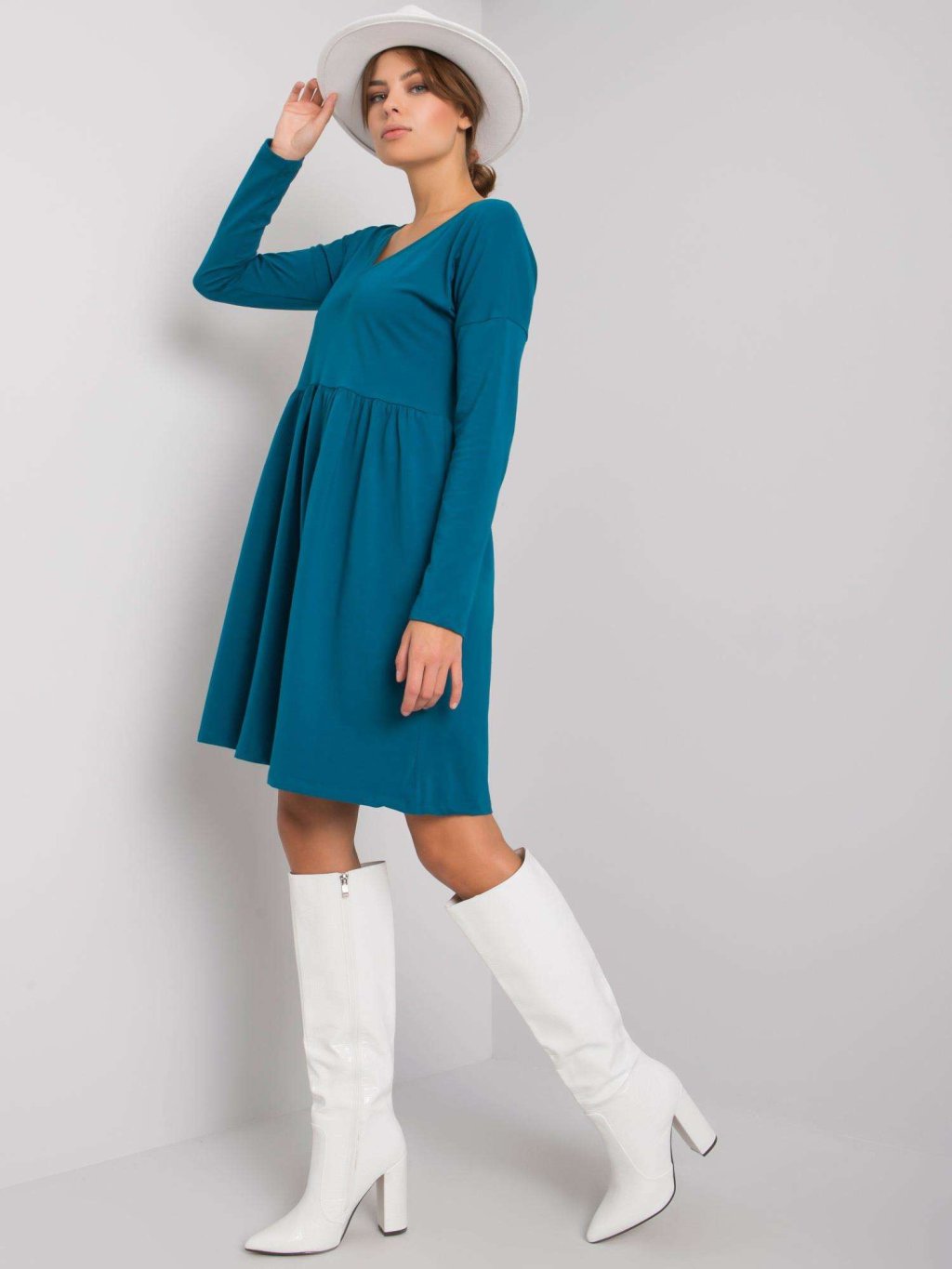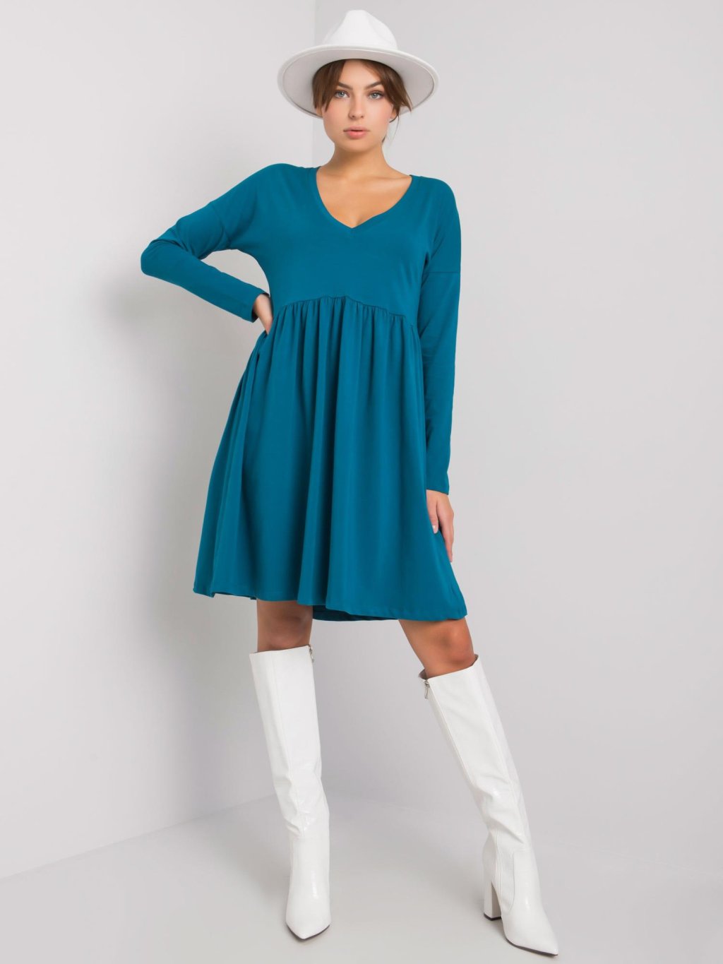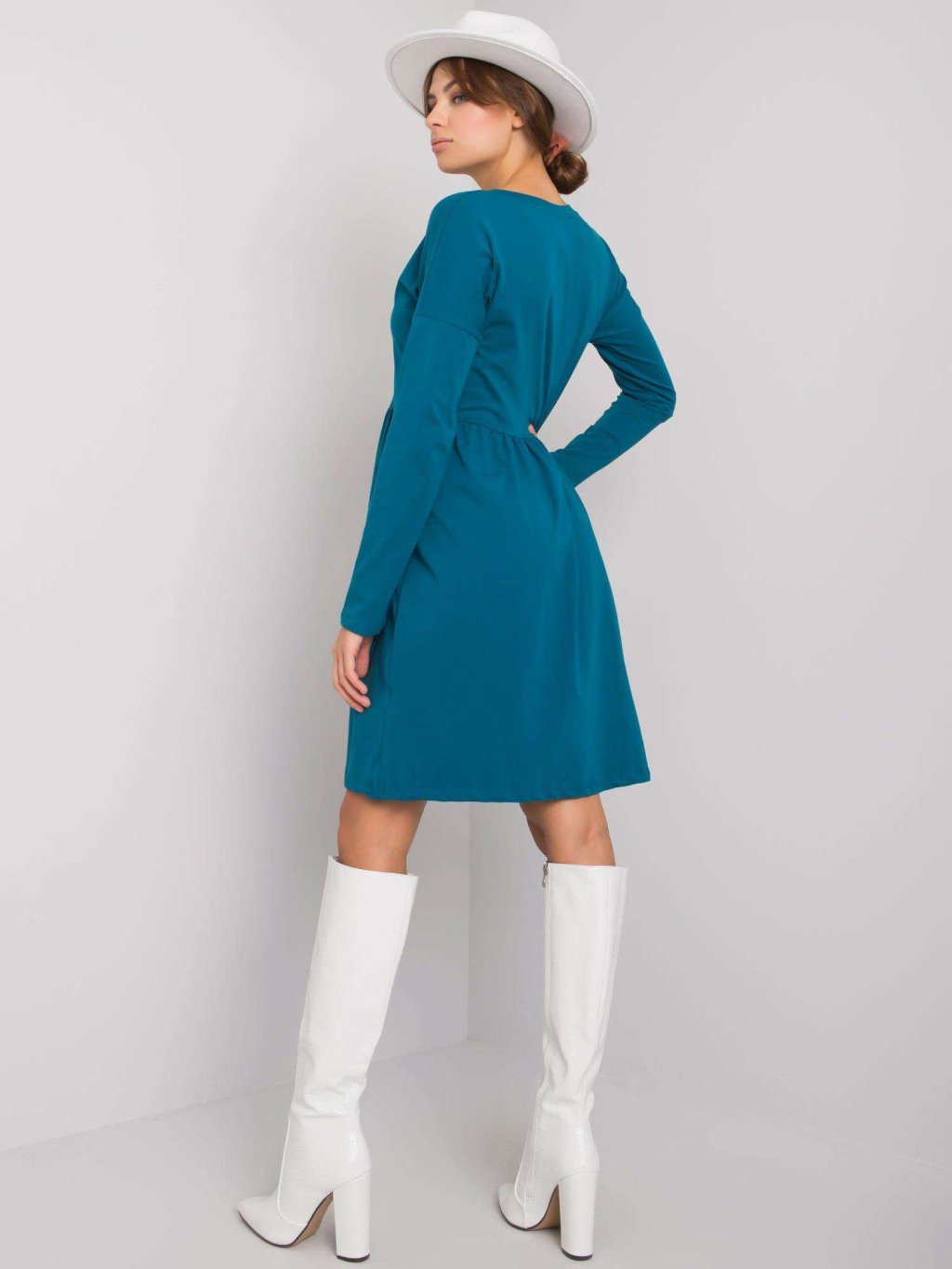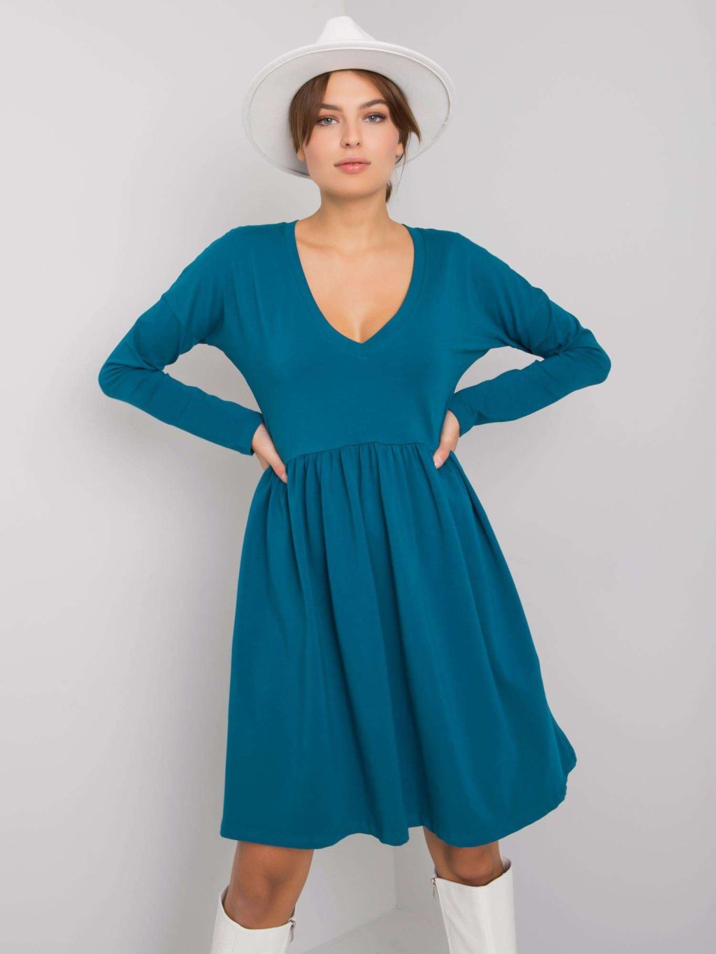 MODRÉ DÁMSKÉ ŠATY S DLOUHÝMI RUKÁVY