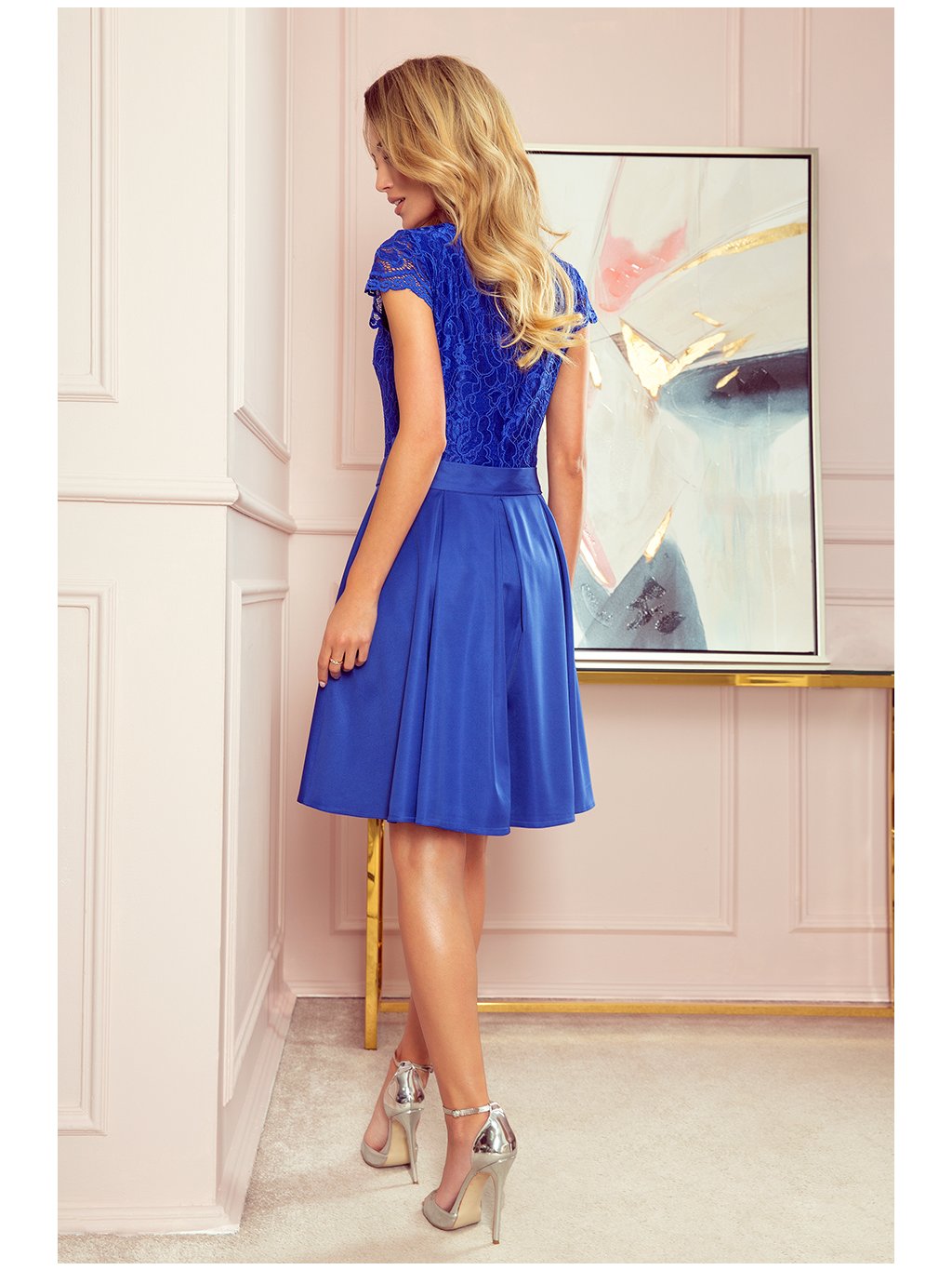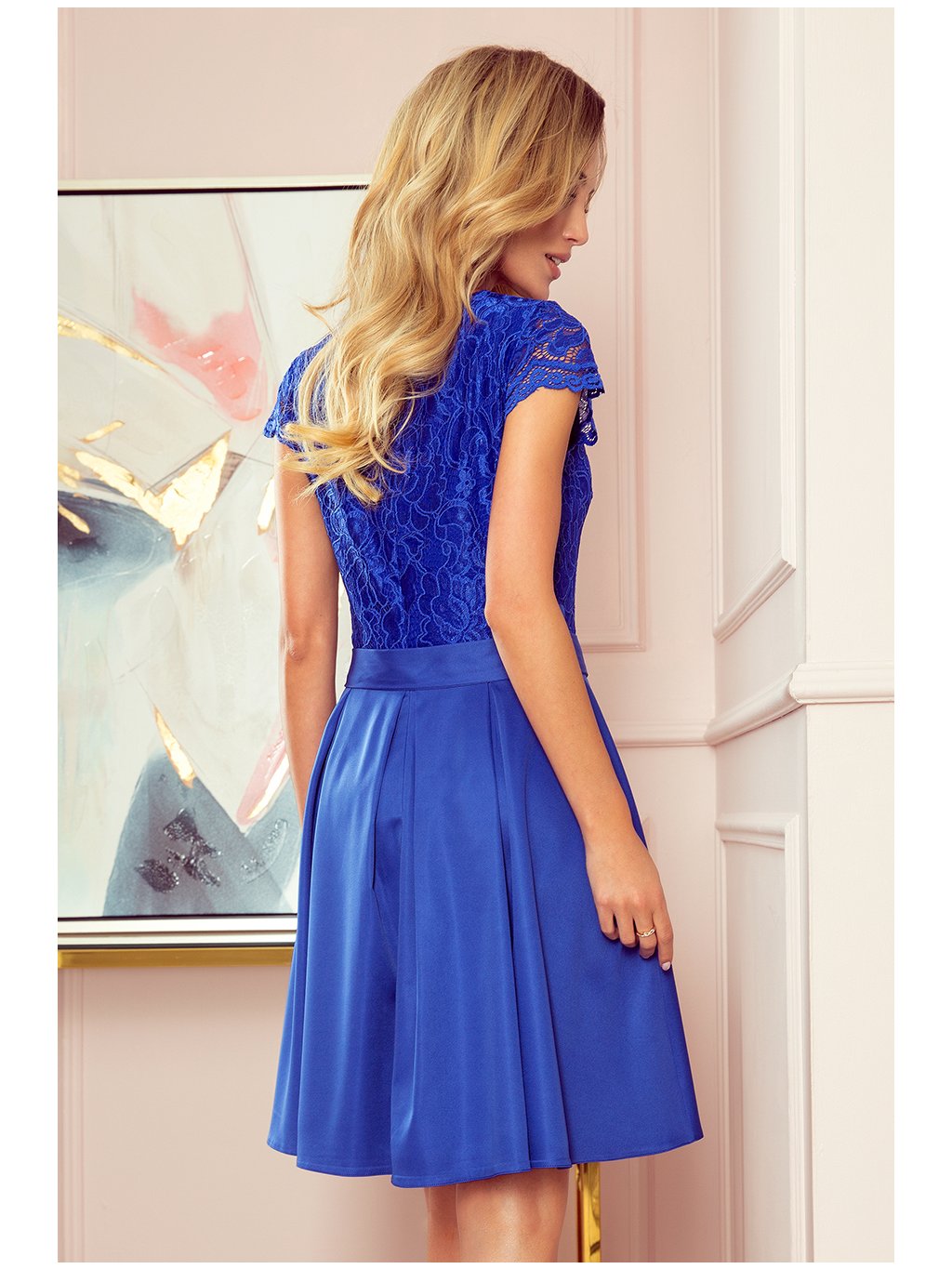MODRÉ ELEGANTNÍ ŠATY S KRAJKOVÝM TOPEM LARA