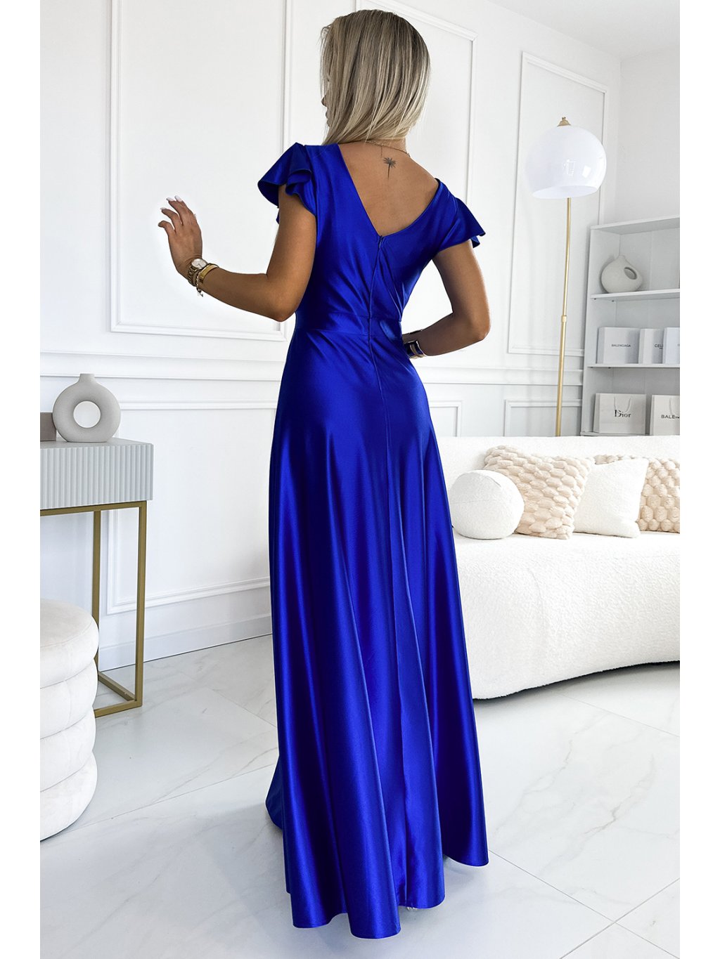MODRÉ LESKLÉ ŠATY S VÝSTŘIHEM CRYSTAL