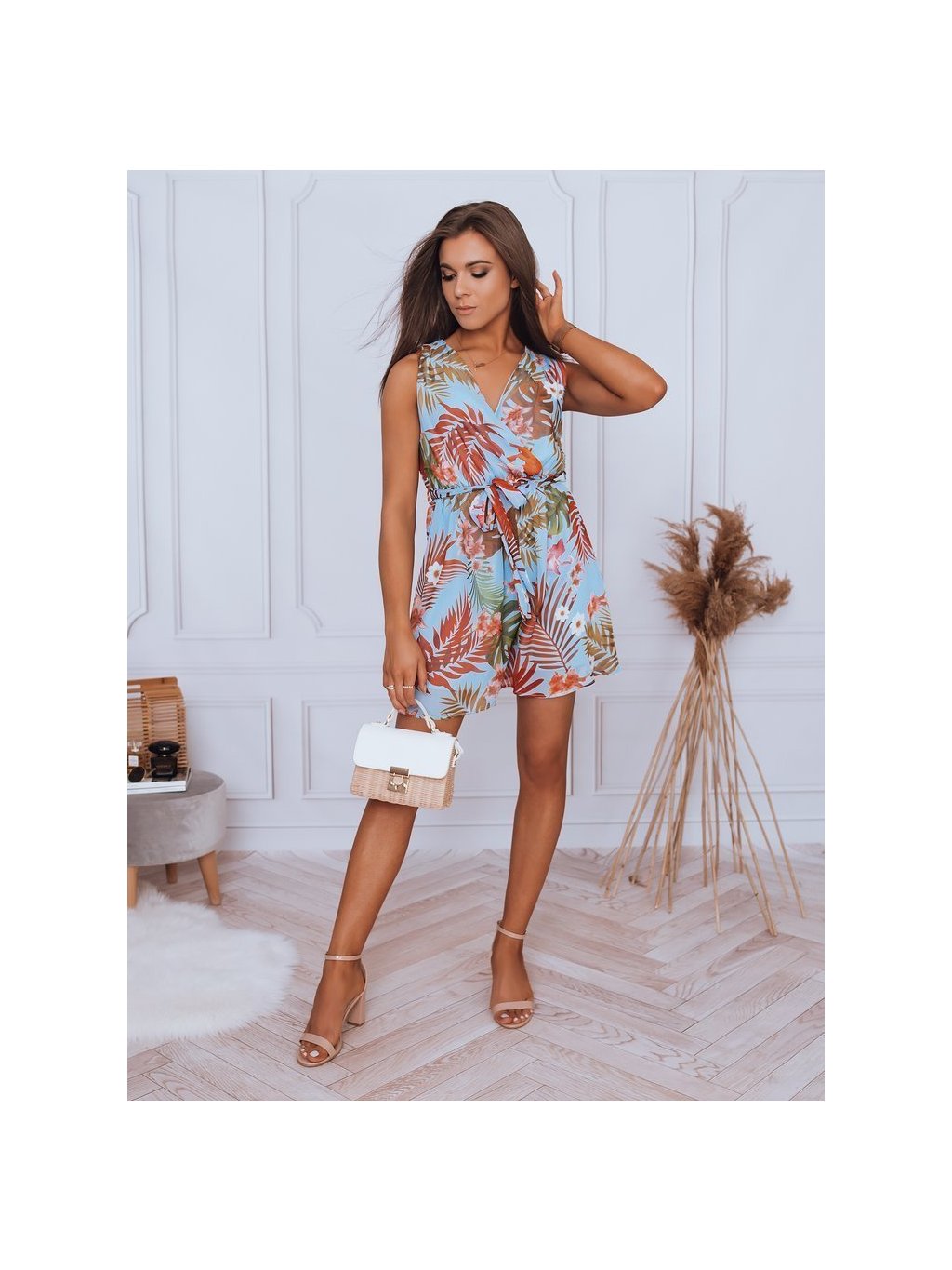 MODRÉ ŠATY S PÁSKEM A VZOREM LISTŮ