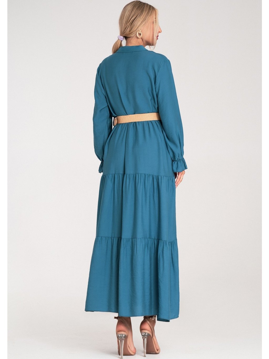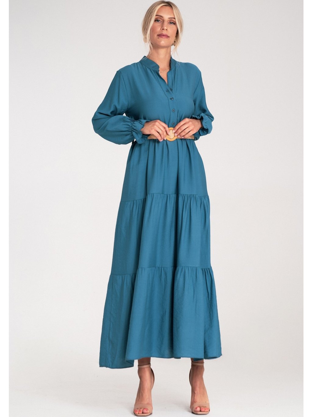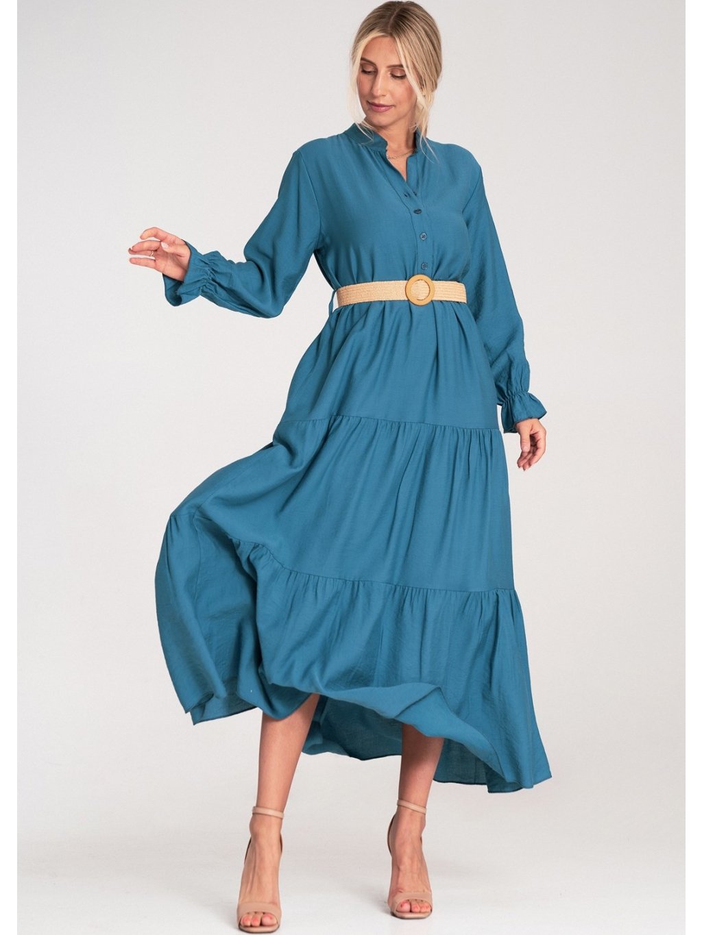 MODRÉ VISKÓZOVÉ MAXI ŠATY SE STOJÁČKEM