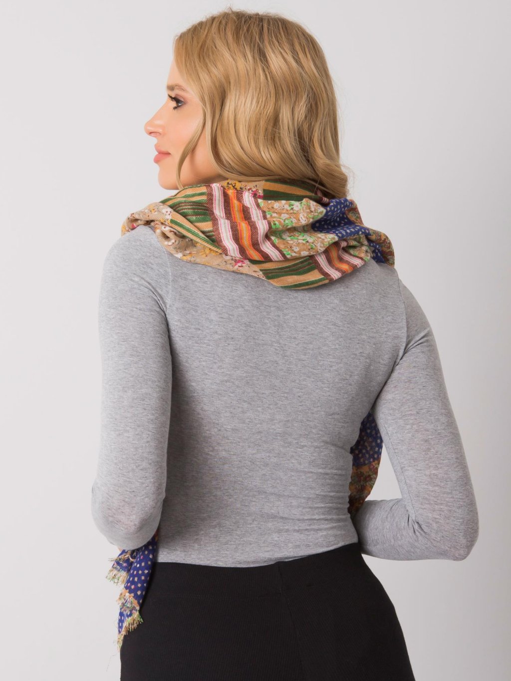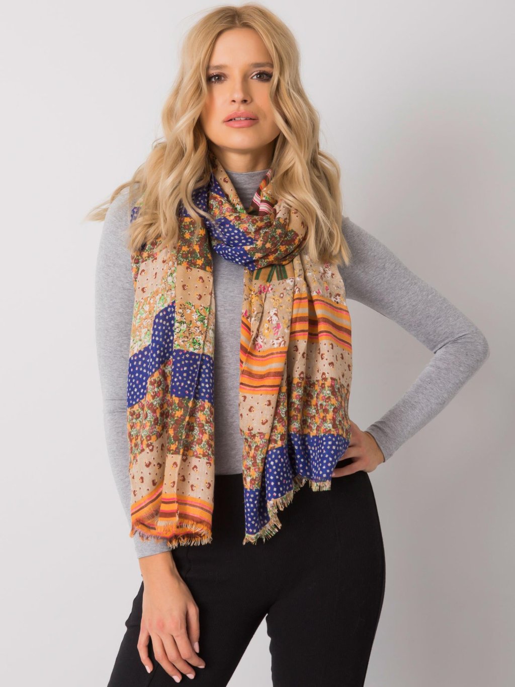 MODRO-BÉŽOVÝ ŠÁTEK S BAREVNÝMI VZORY