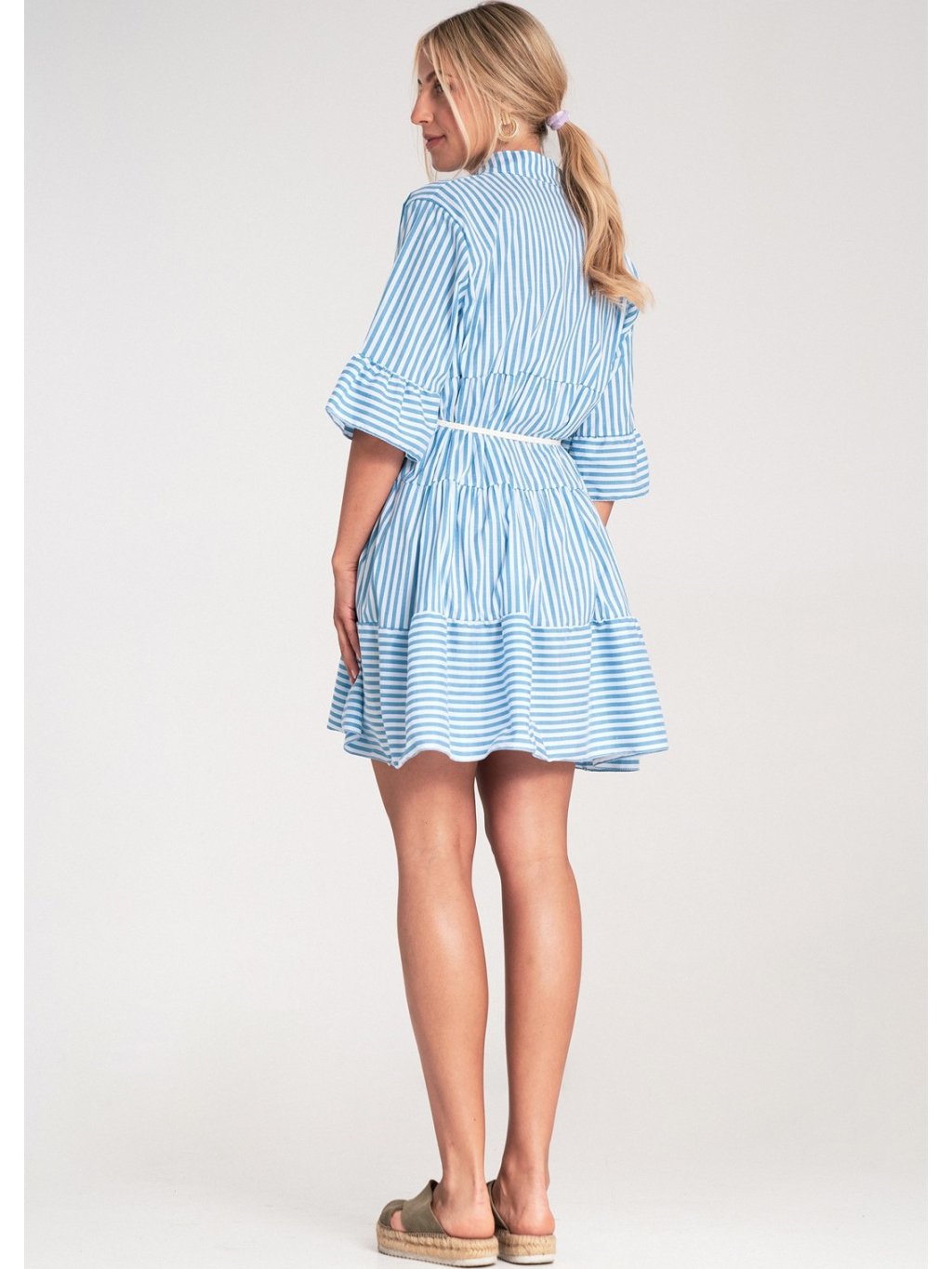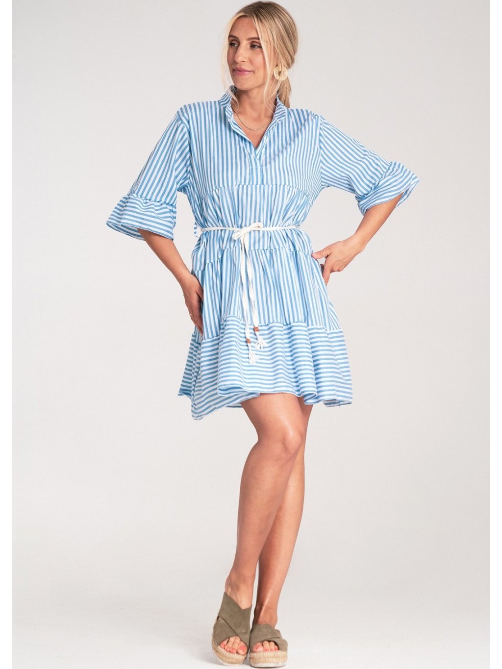 MODRO-BÍLÉ PRUHOVANÉ MINI ŠATY SE STOJÁČKEM