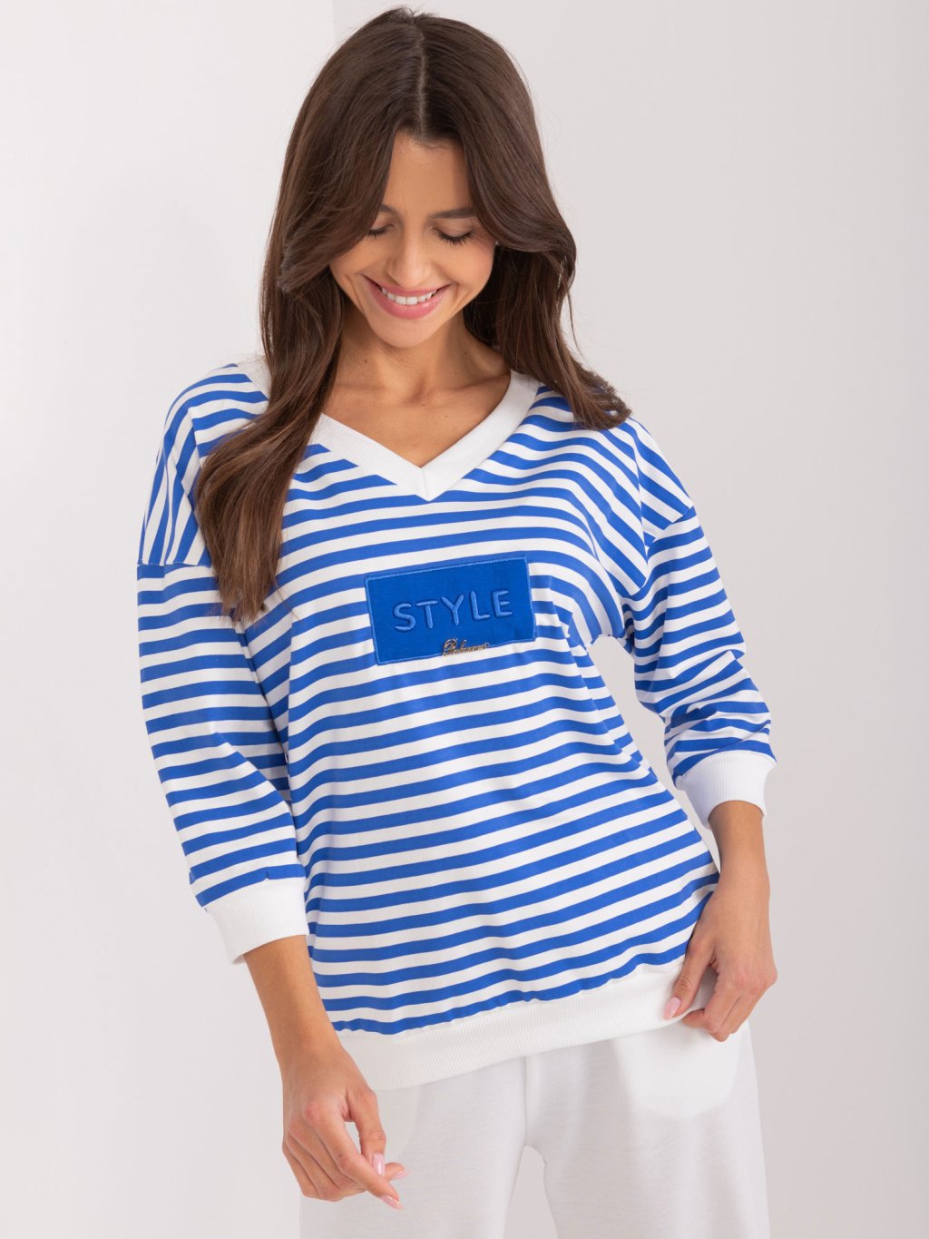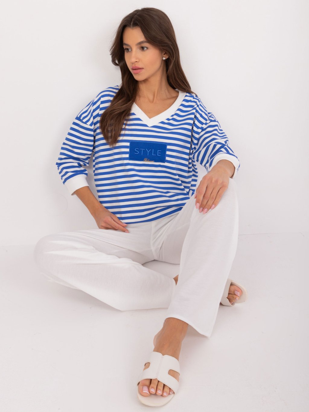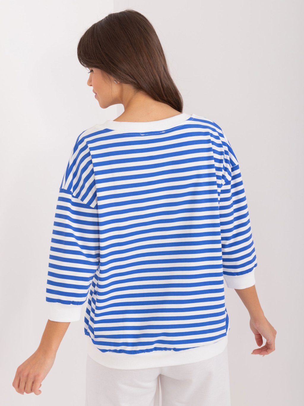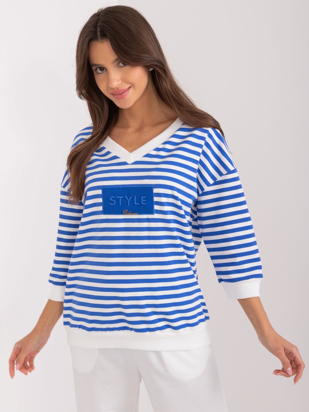 MODRO-BÍLÉ PRUHOVANÉ TRIKO S VÝSTŘIHEM A 3/4 RUKÁVEM