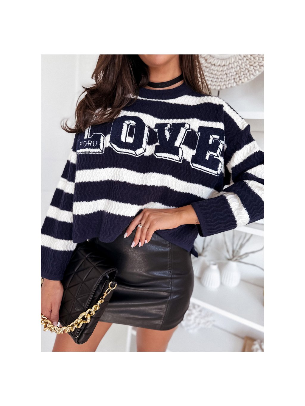 MODRO-BÍLÝ DÁMSKÝ SVETR CHLOE S NÁPISEM