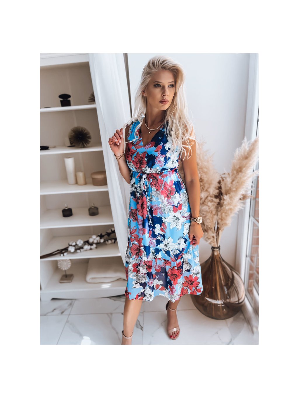 MODRO-ČERVENÉ MIDI ŠATY S KVĚTINOVÝM POTISKEM MADAM