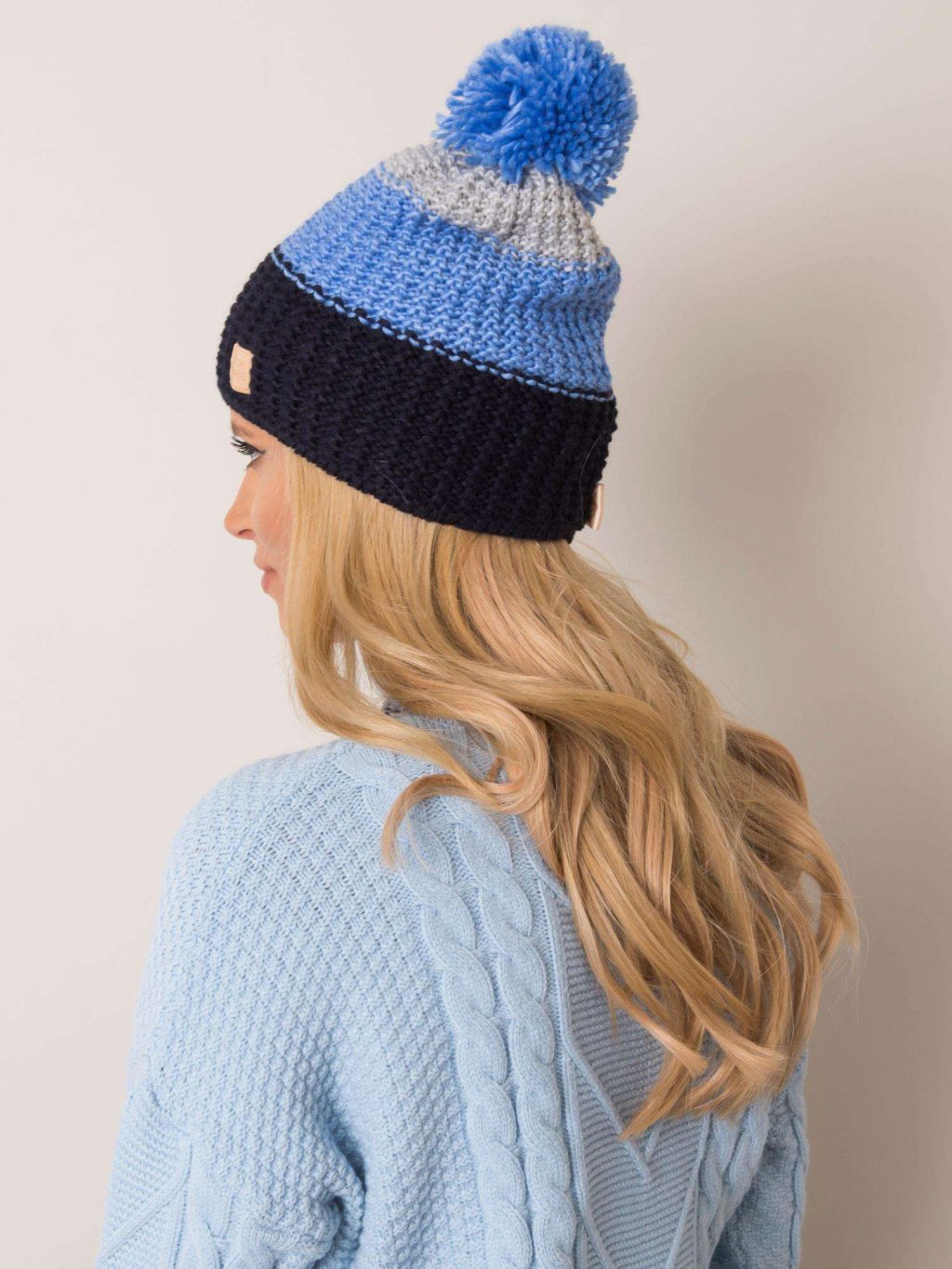 MODRO-ŠEDÁ PRUHOVANÁ DÁMSKÁ ČEPICE S BAMBULÍ