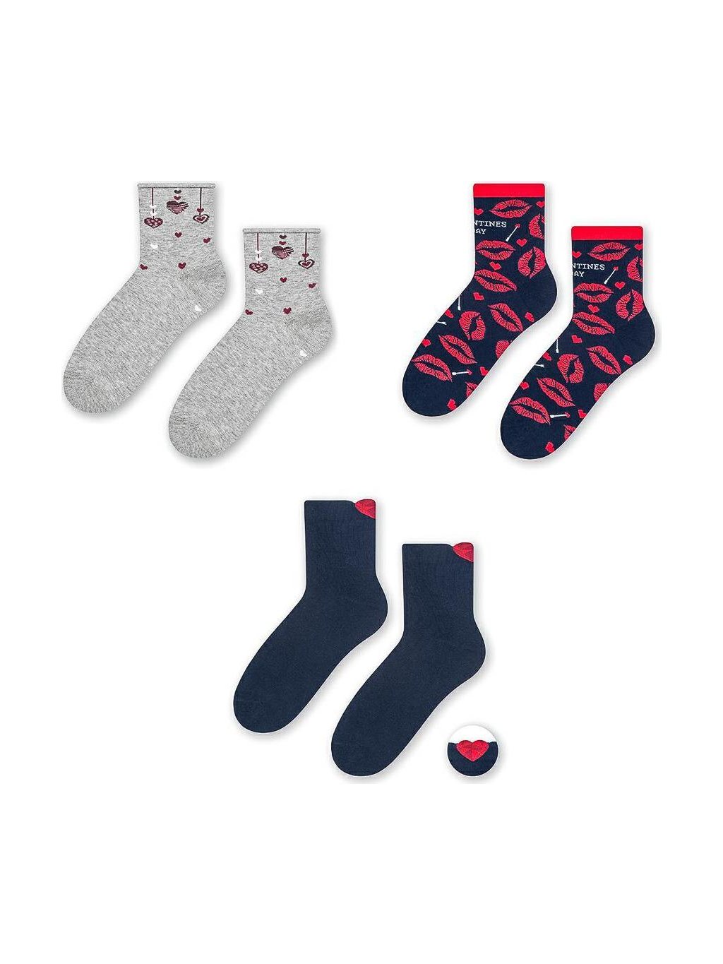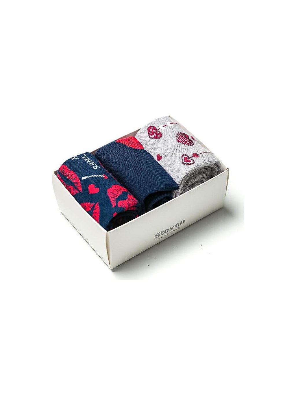 MODRO-ŠEDÁ SADA DÁMSKÝCH PONOŽEK SE SRDÍČKY ART.133