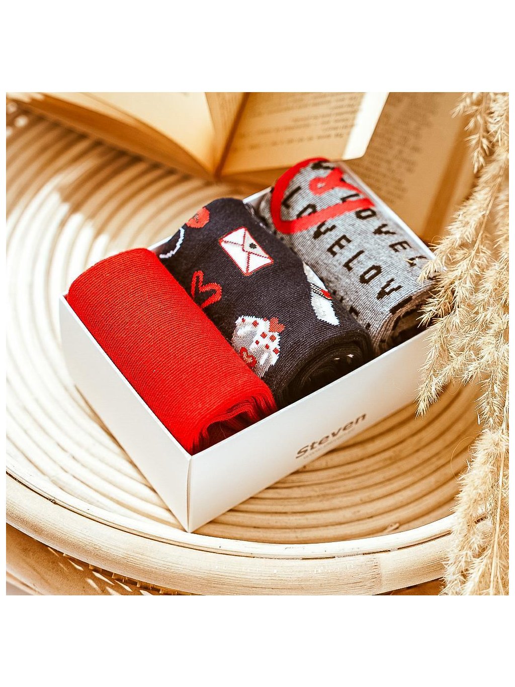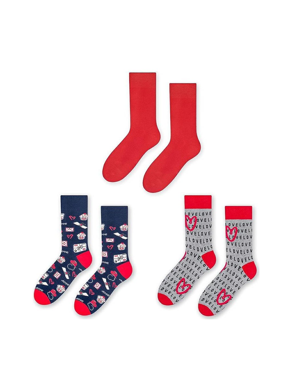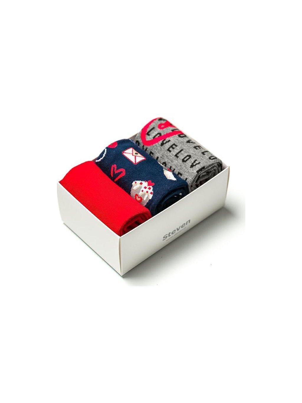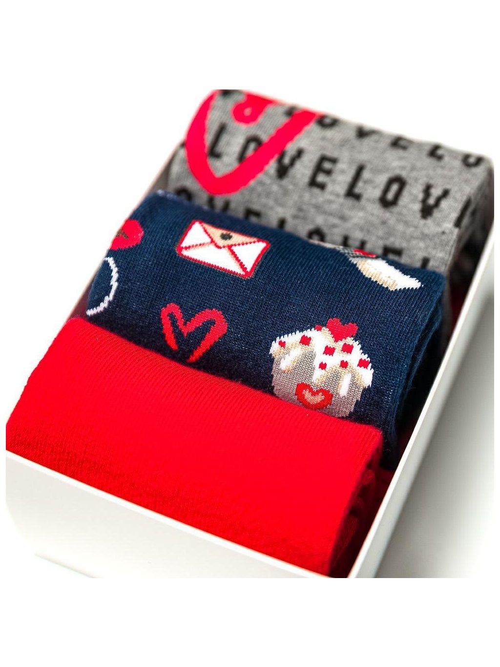 MODRO-ŠEDO-ČERVENÁ VALENTÝNSKÁ SADA PÁNSKÝCH PONOŽEK ART.133