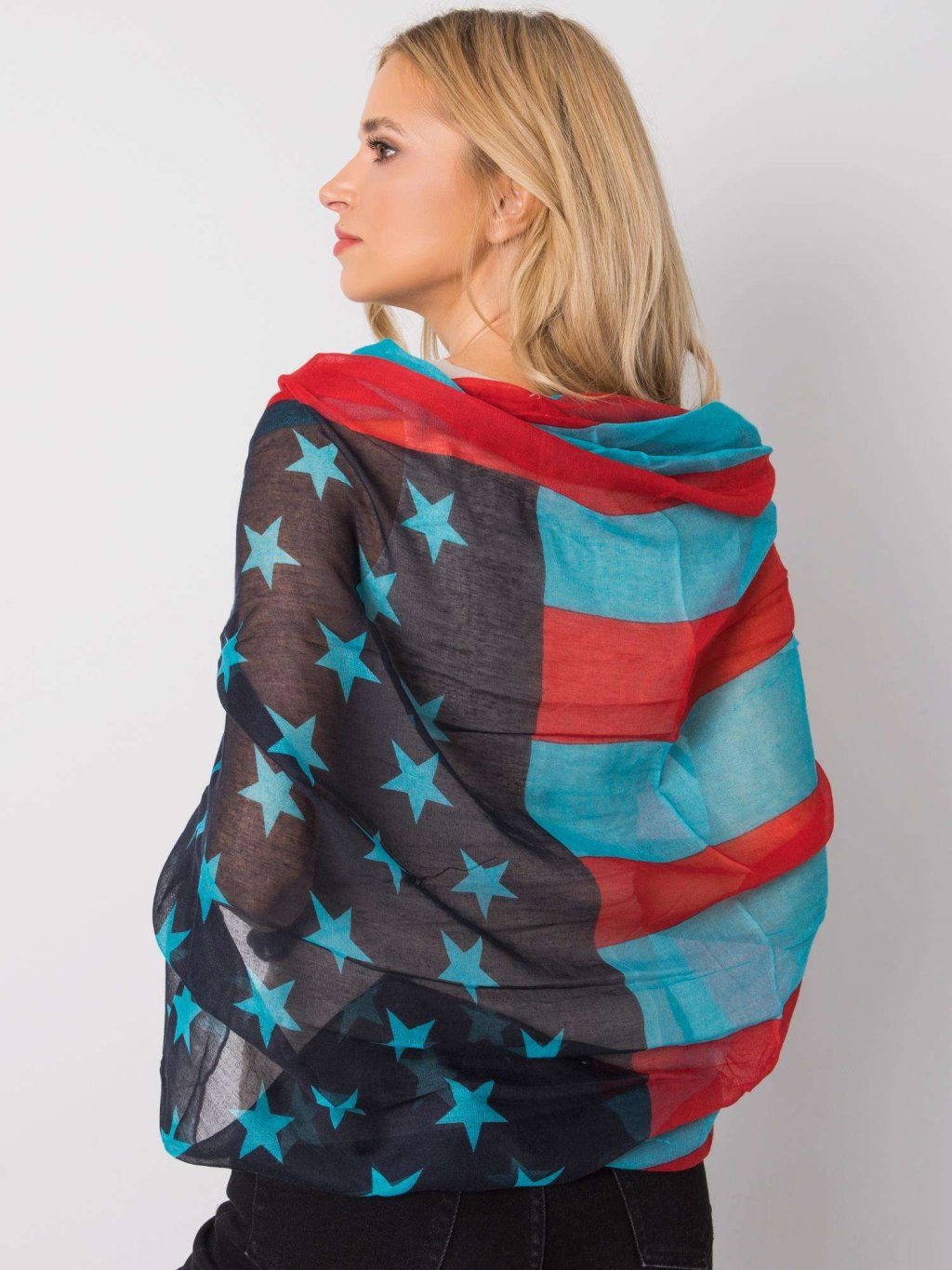 MODRÝ DÁMSKÝ PRUHOVANÝ ŠÁTEK S HVĚZDAMI