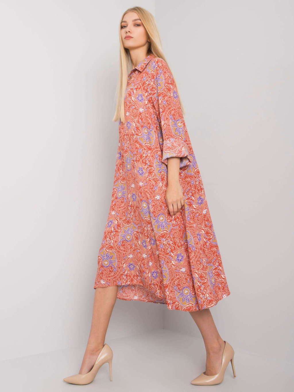 ORANŽOVÉ DÁMSKÉ KVĚTINOVÉ MIDI ŠATY