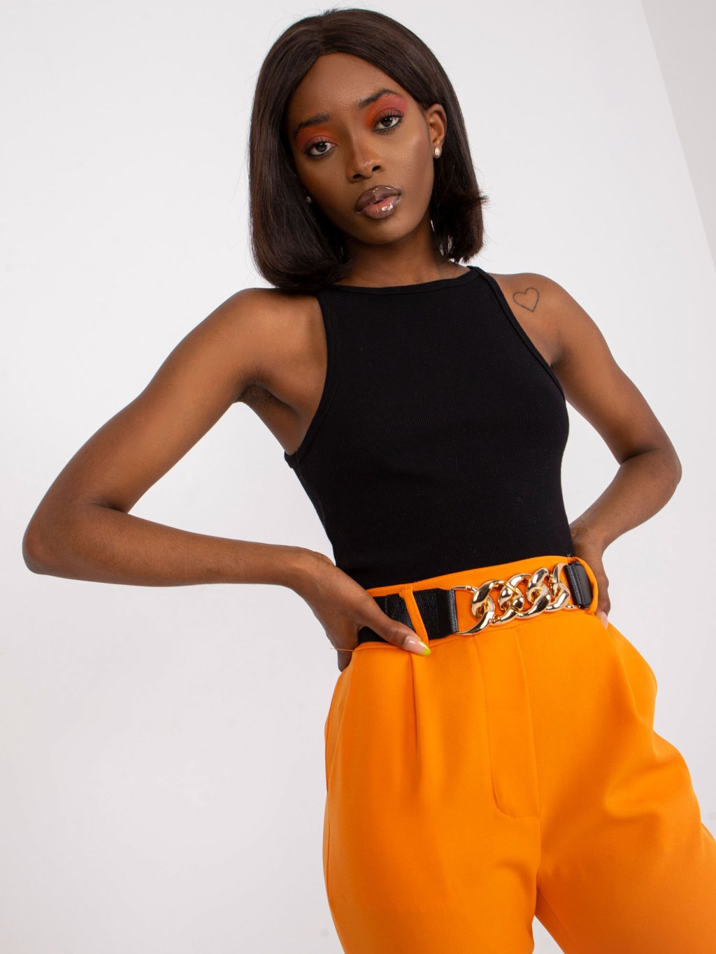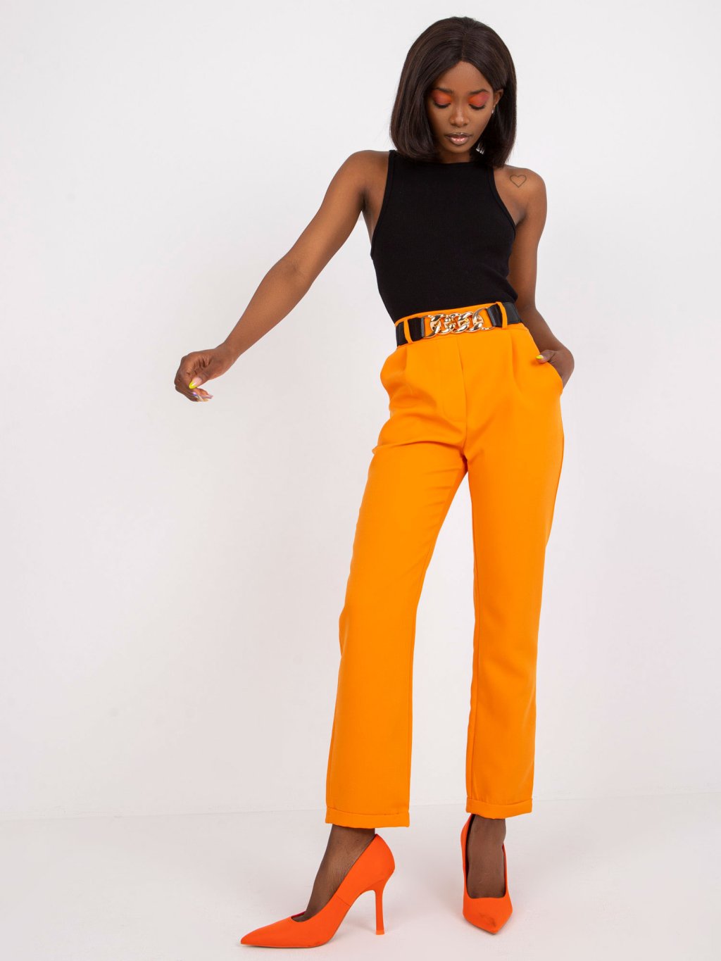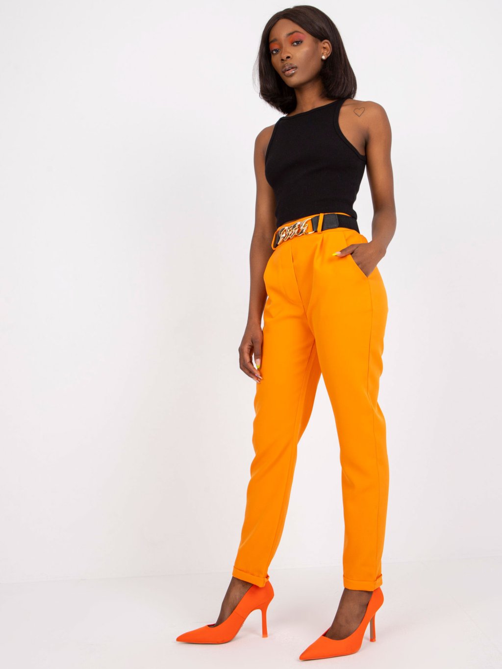 ORANŽOVÉ KALHOTY S VYSOKÝM PASEM A OPASKEM