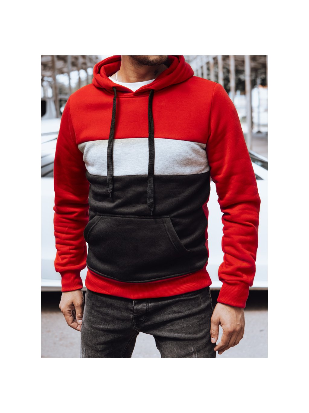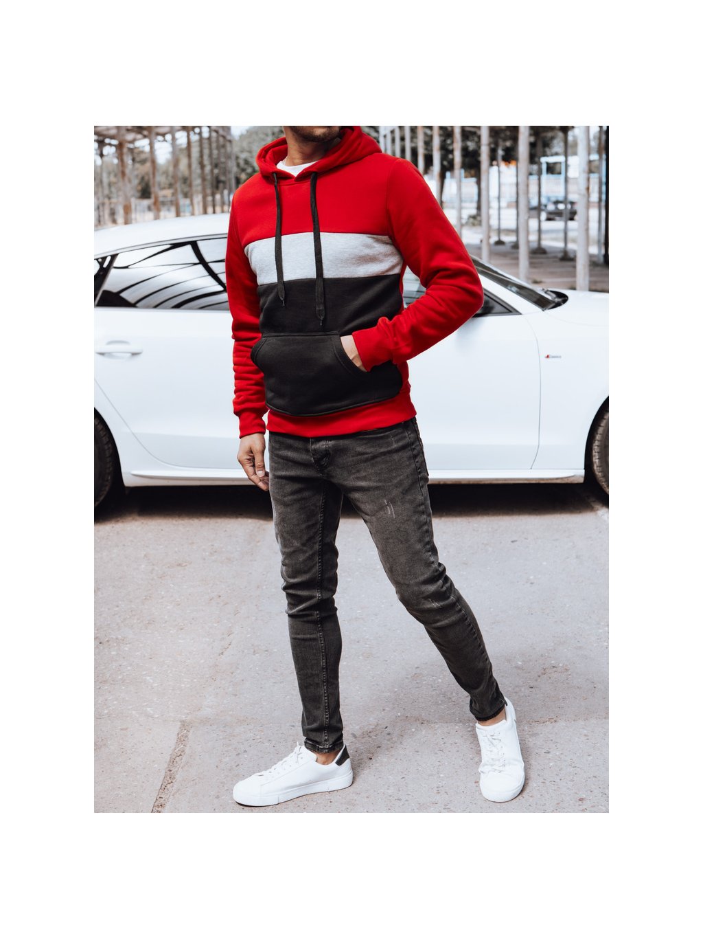 PÁNSKÁ ČERVENÁ MIKINA S BÍLO-ČERNÝMI PRUHY