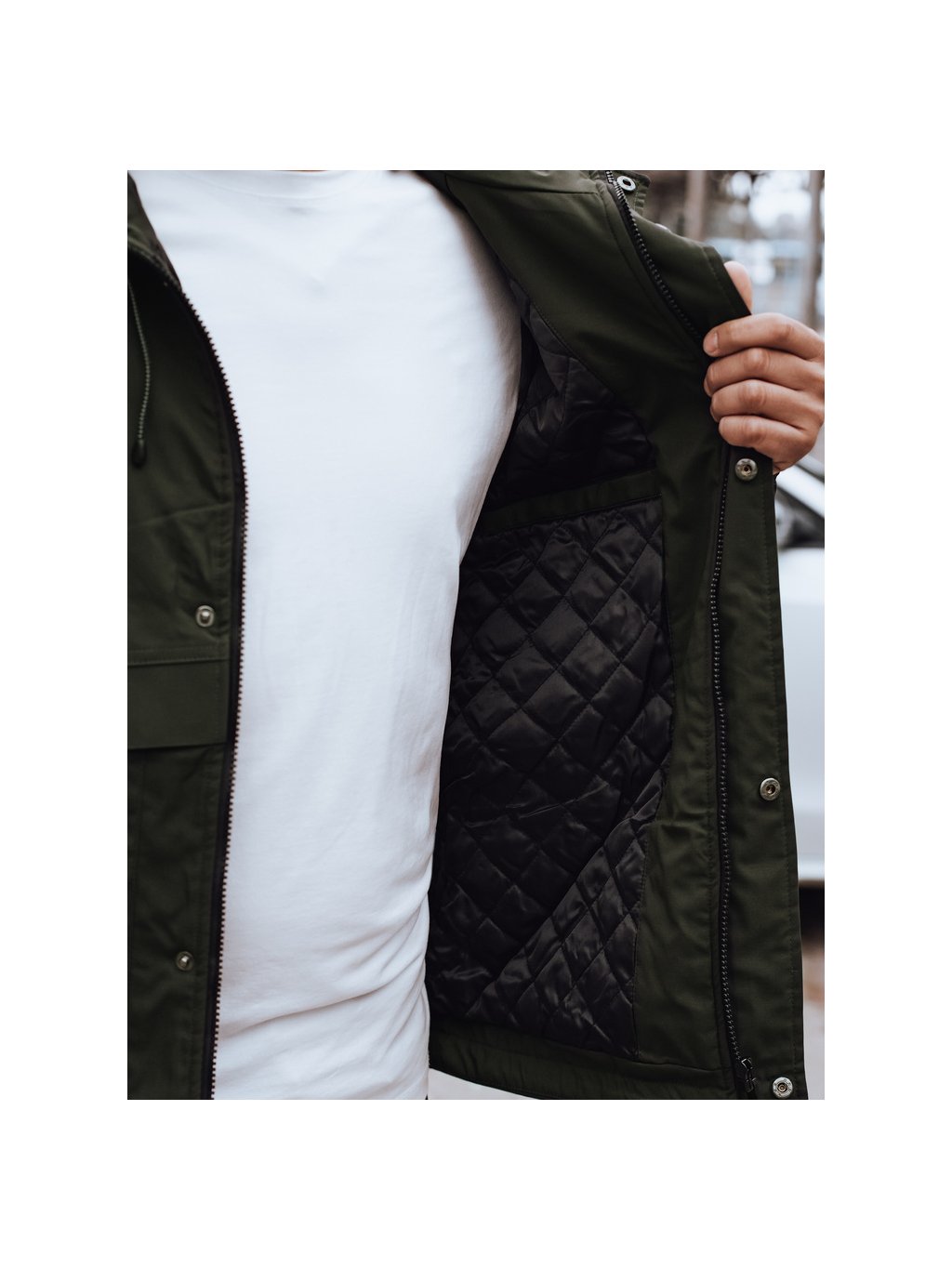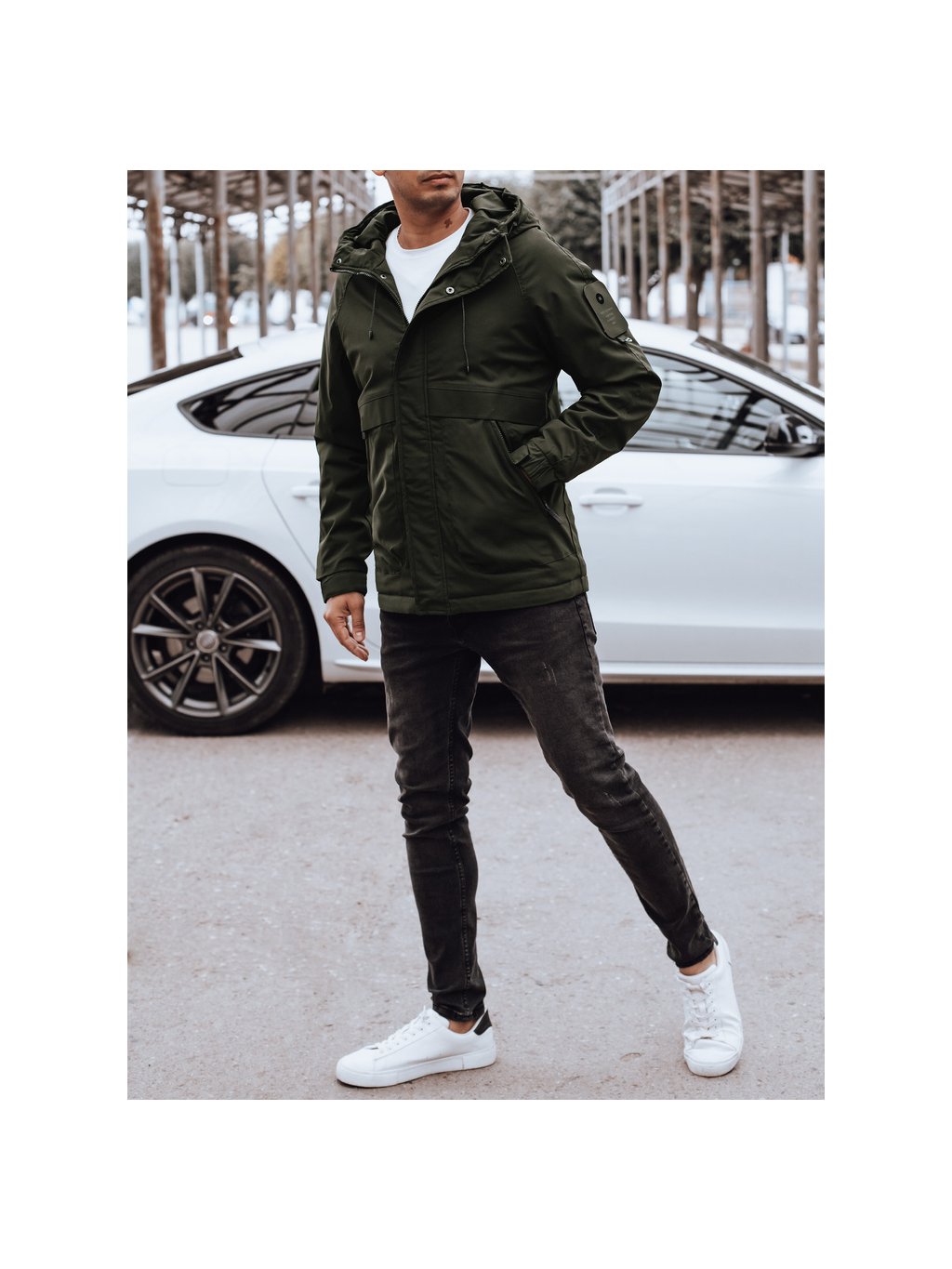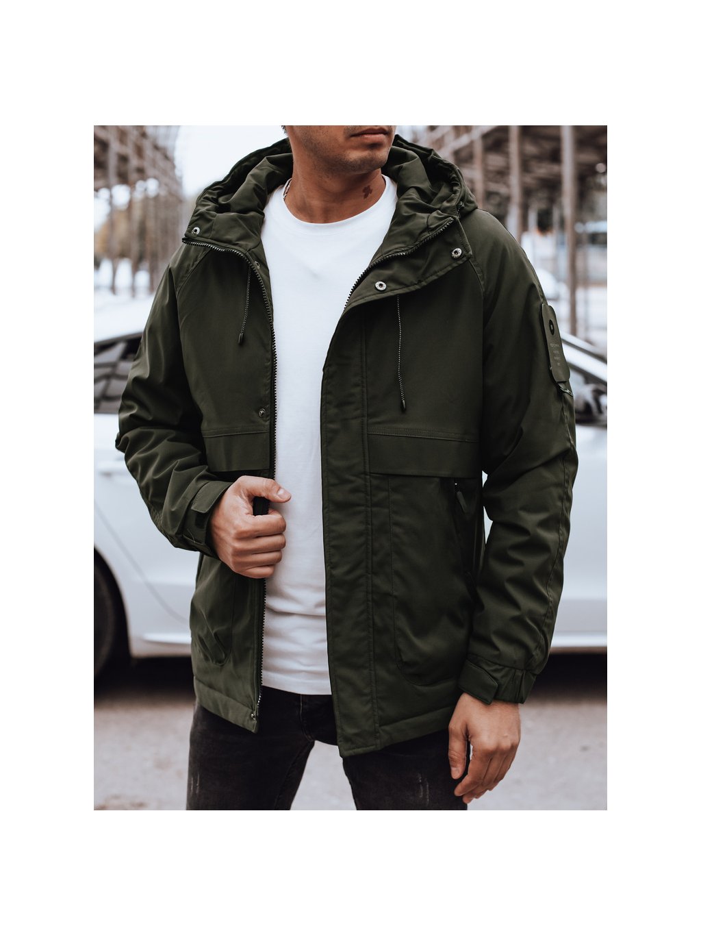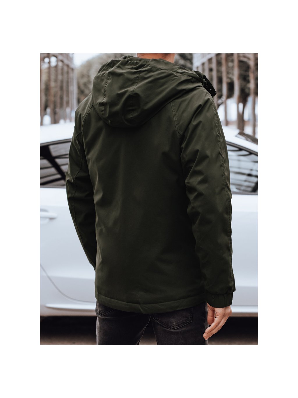 PÁNSKÁ TMAVĚ ZELENÁ PŘECHODOVÁ BUNDA S KAPUCÍ