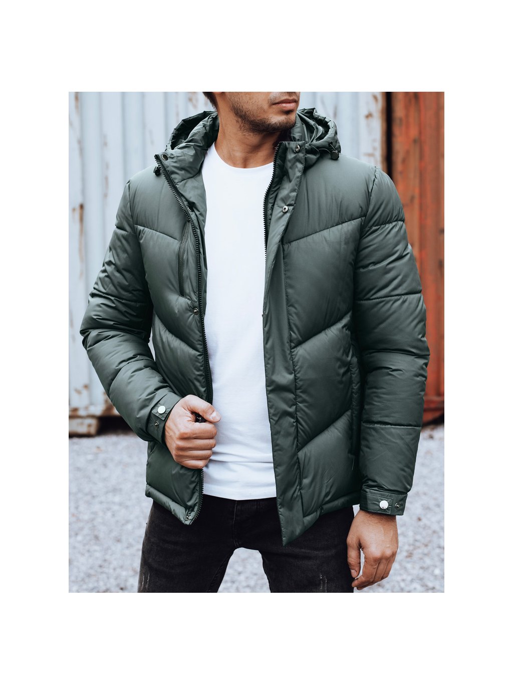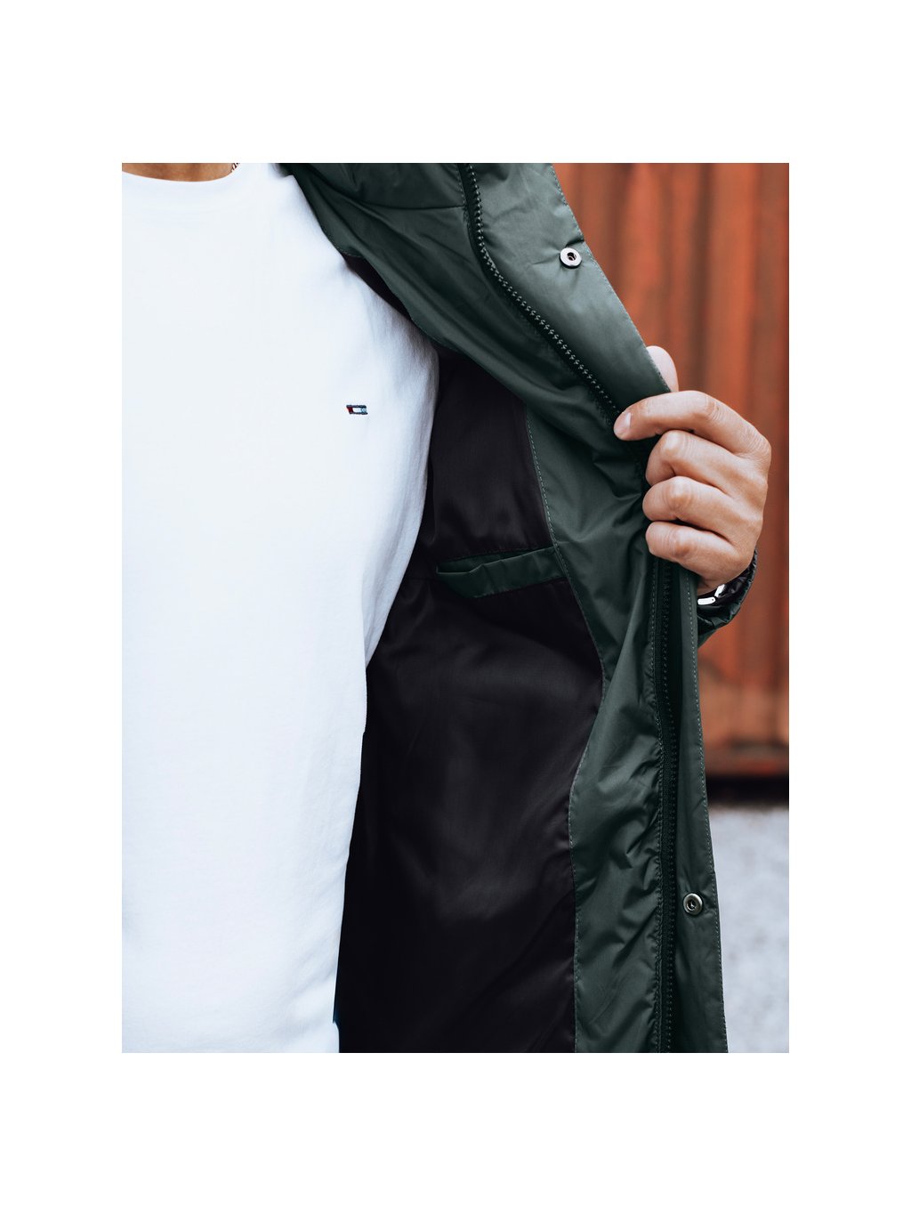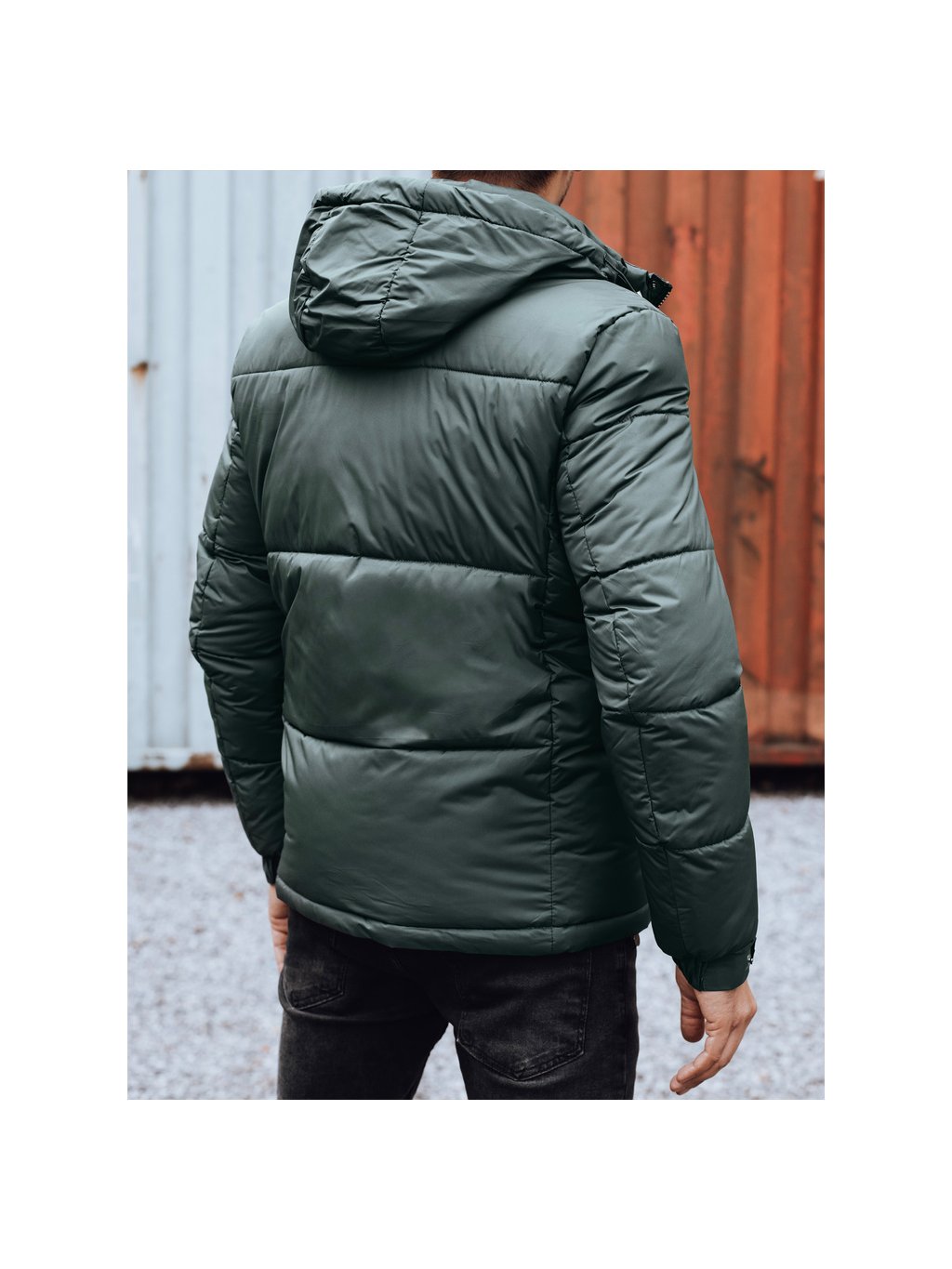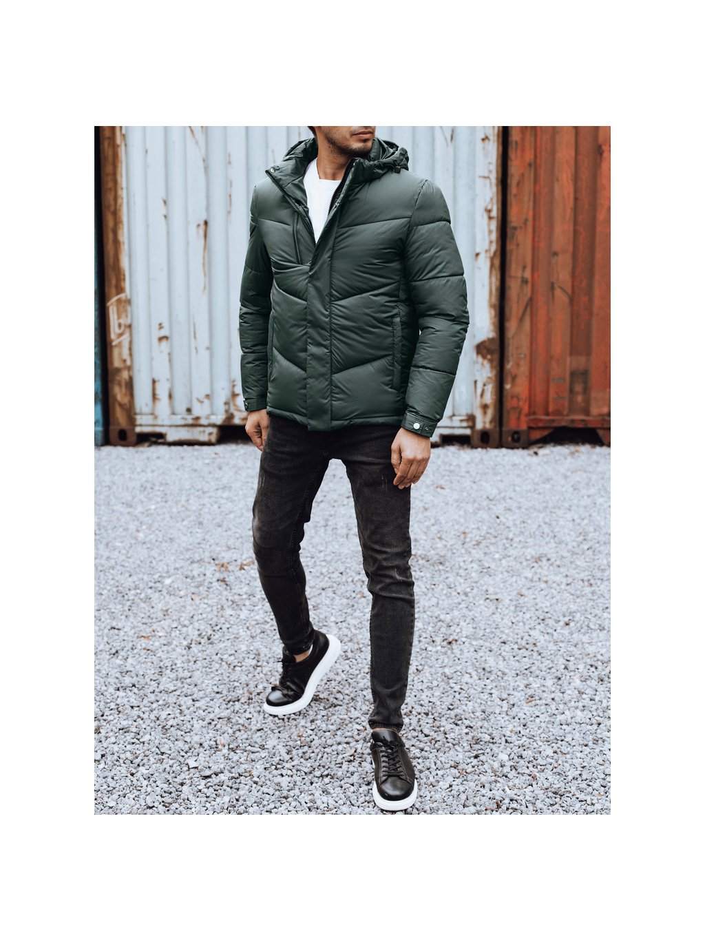 PÁNSKÁ TMAVĚ ZELENÁ ZIMNÍ BUNDA S ODEPÍNACÍ KAPUCÍ